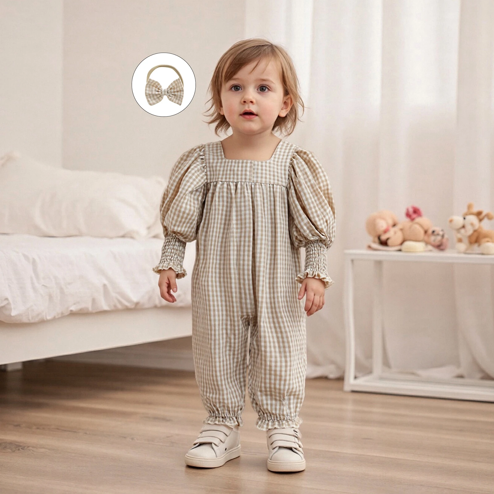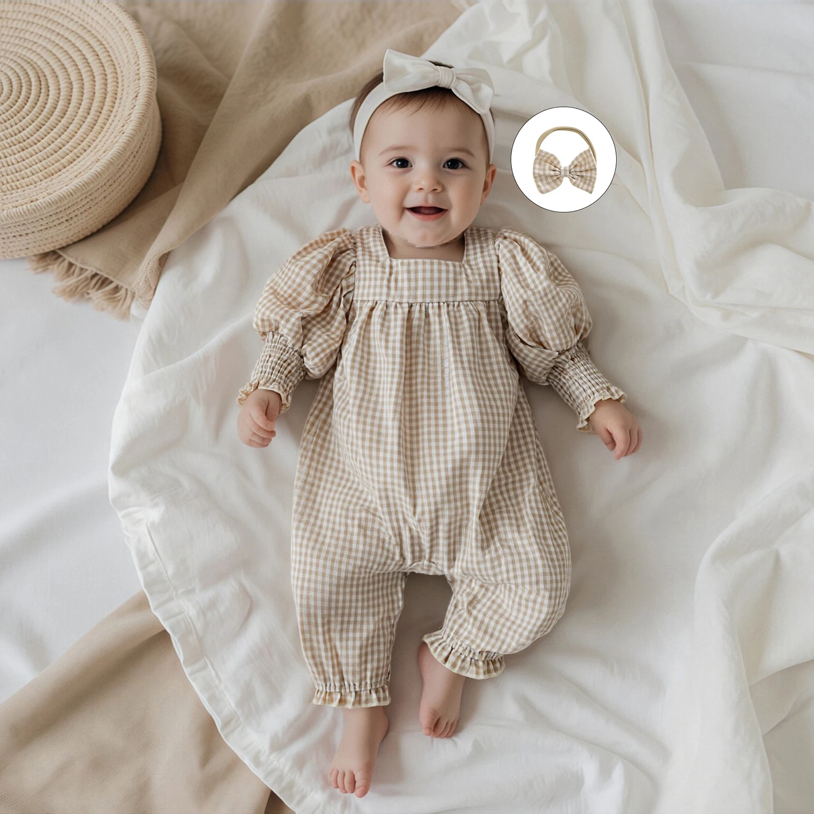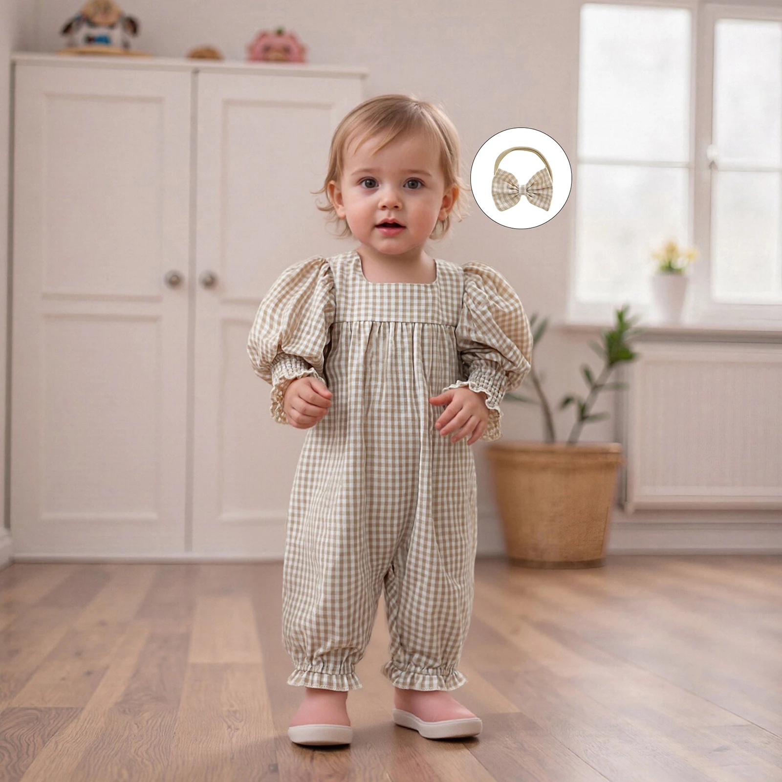 Get your little one ready for any occasion with the adorable Pudcoco Infant Baby Girls Fall Romper. This charming jumpsuit features a delightful plaid print design that is perfect for fall, making it a must-have addition to your baby’s wardrobe. With its square neck and long sleeves, this outfit combines style and comfort, ensuring that your baby looks fashionable while feeling cozy. Plus, it comes with a cute bow headband to complete the look!