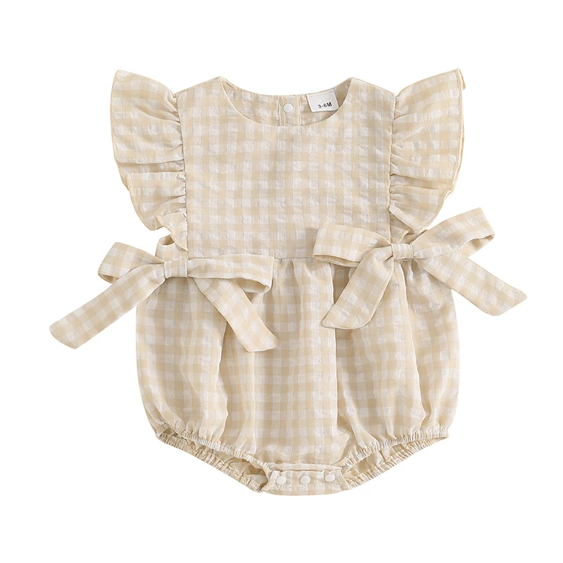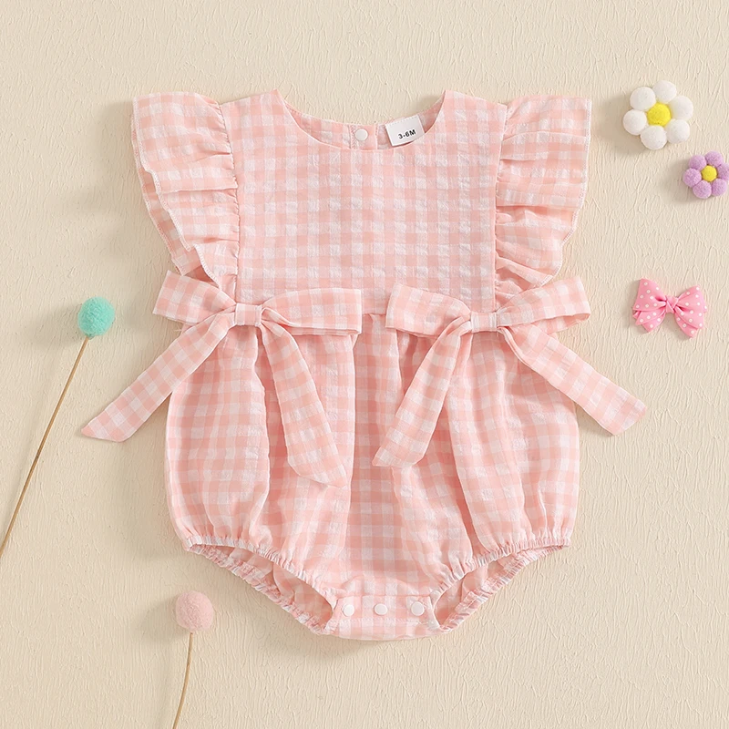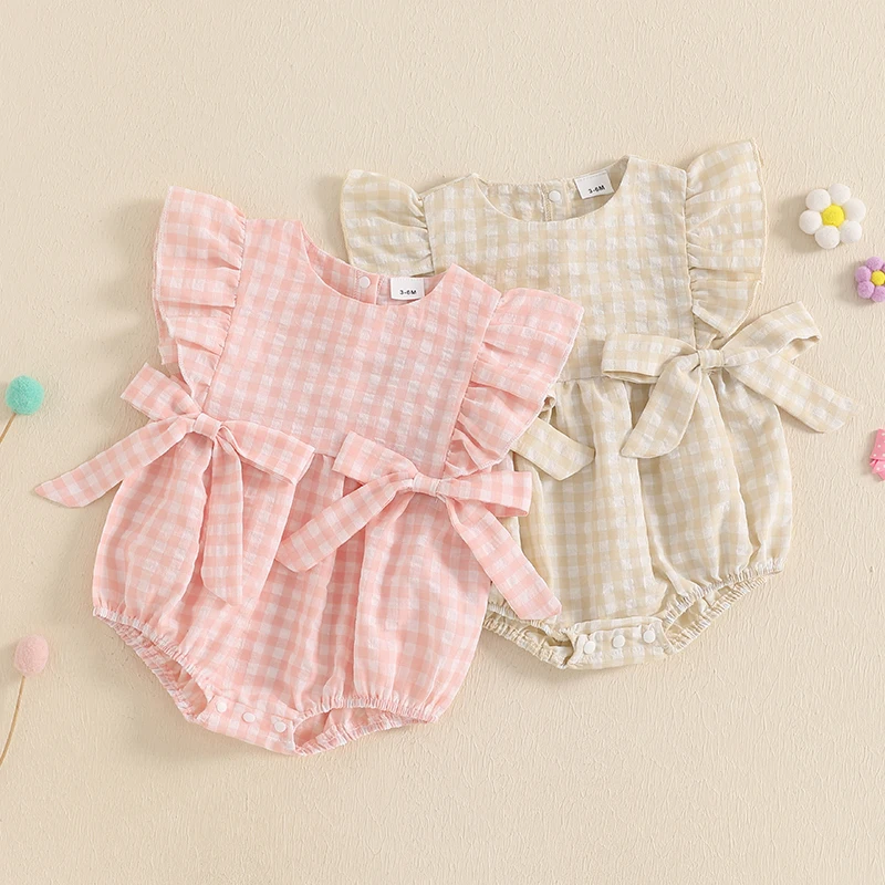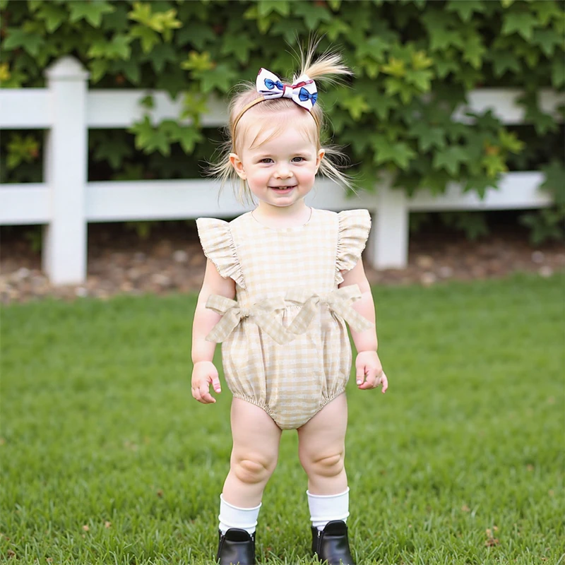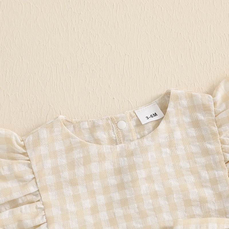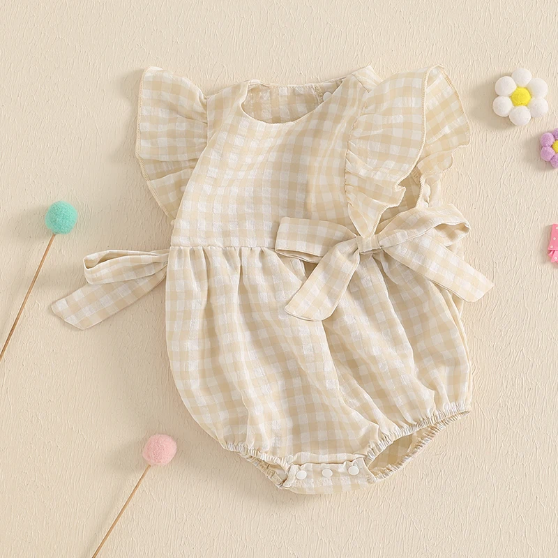 Introducing the Baby Girl Plaid Print Romper with flutter sleeves, designed to keep your child comfortable and stylish during warm sunny days at the beach or park. This adorable jumpsuit features a delightful plaid print and a charming bow detail, making it an essential addition to your baby’s summer wardrobe. Made from a soft cotton blend, this romper ensures breathability and ease of movement for your little one, allowing her to explore and play freely.