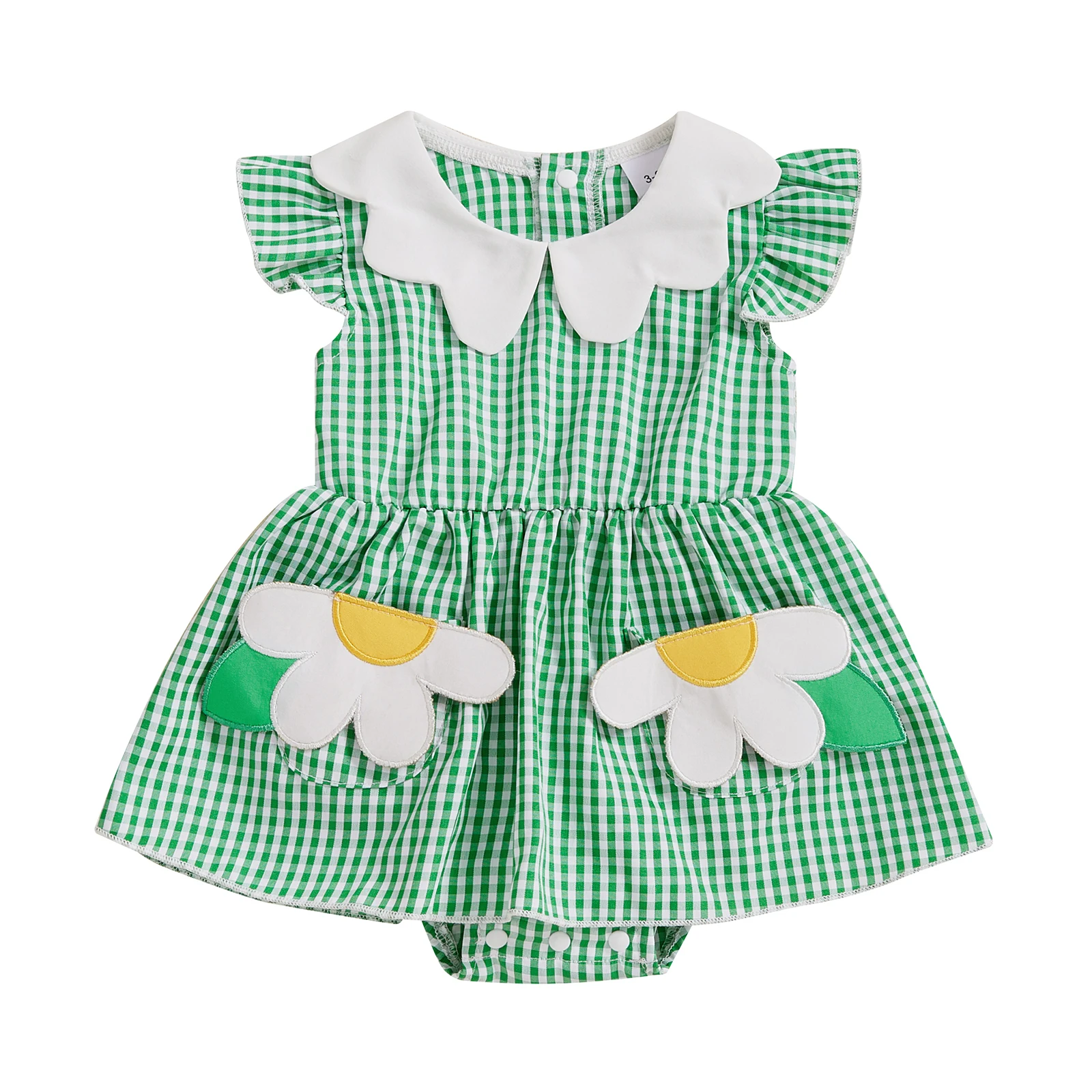 Embrace the charm of summer with our Baby Girl Plaid Romper Dress. This delightful outfit combines style and functionality, featuring a playful flower doll collar and fly sleeves. Designed for comfort and ease, it is perfect for your little one’s everyday wear or special occasions. With its cute pockets, this romper makes for the ideal outfit for your baby girl to explore, play, and create beautiful memories.