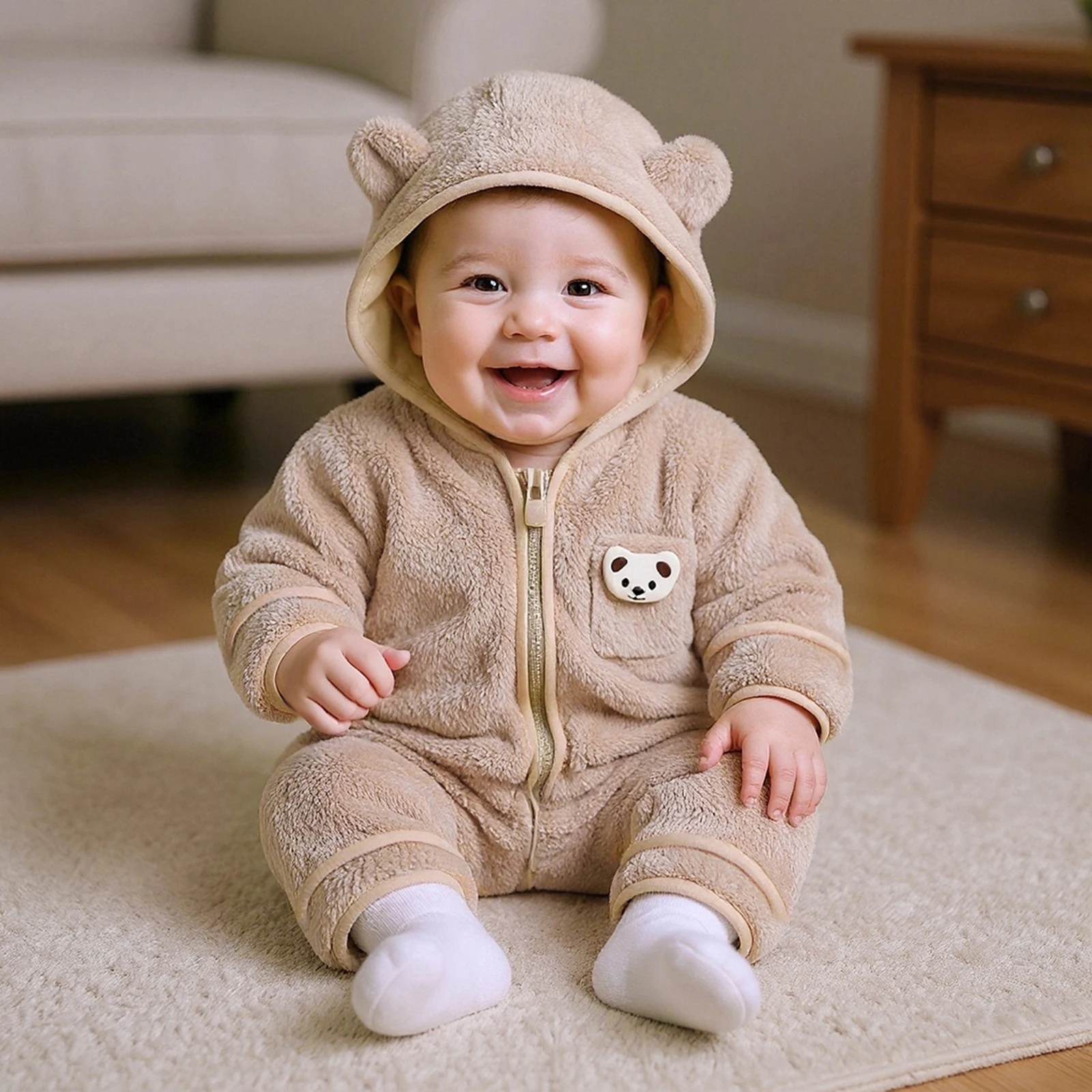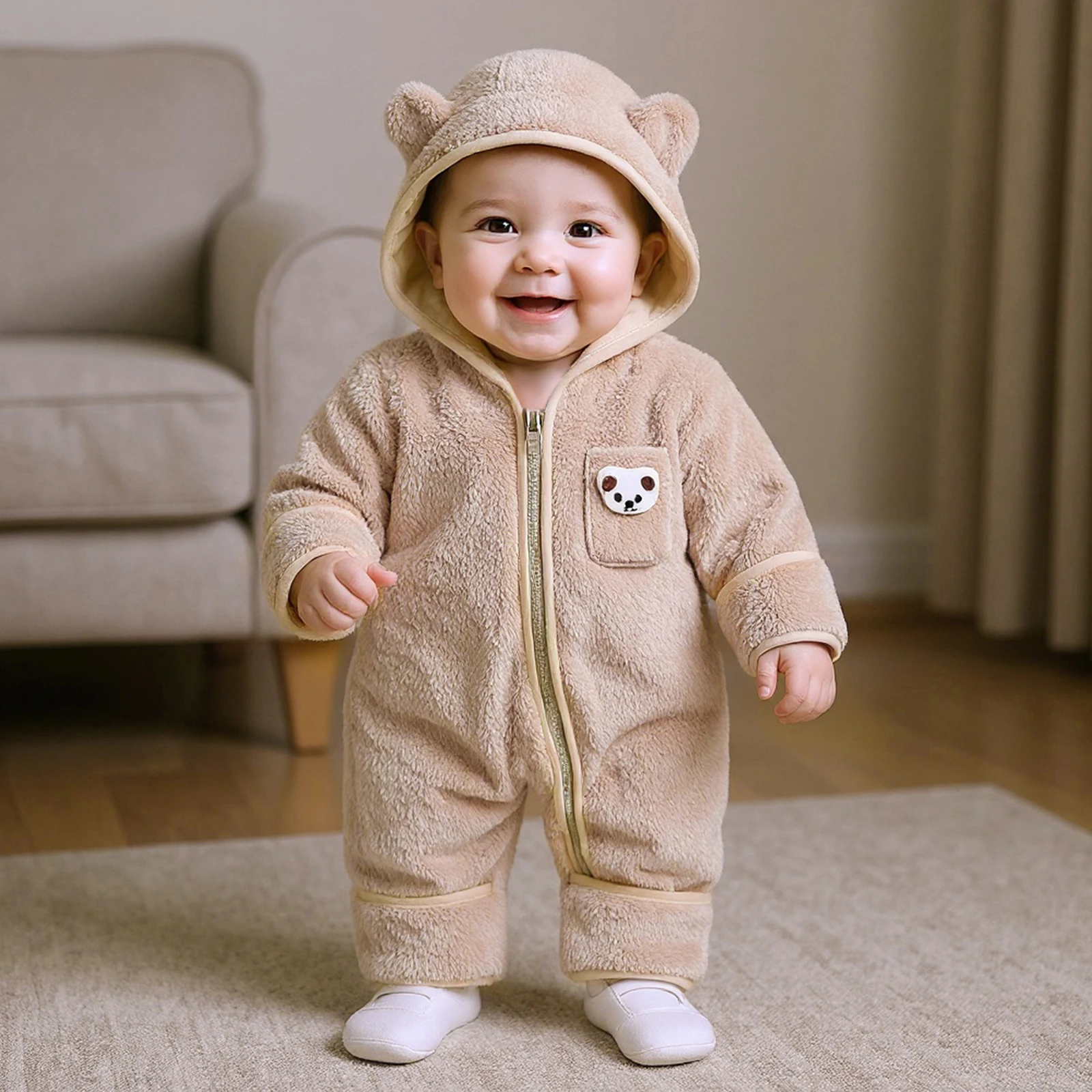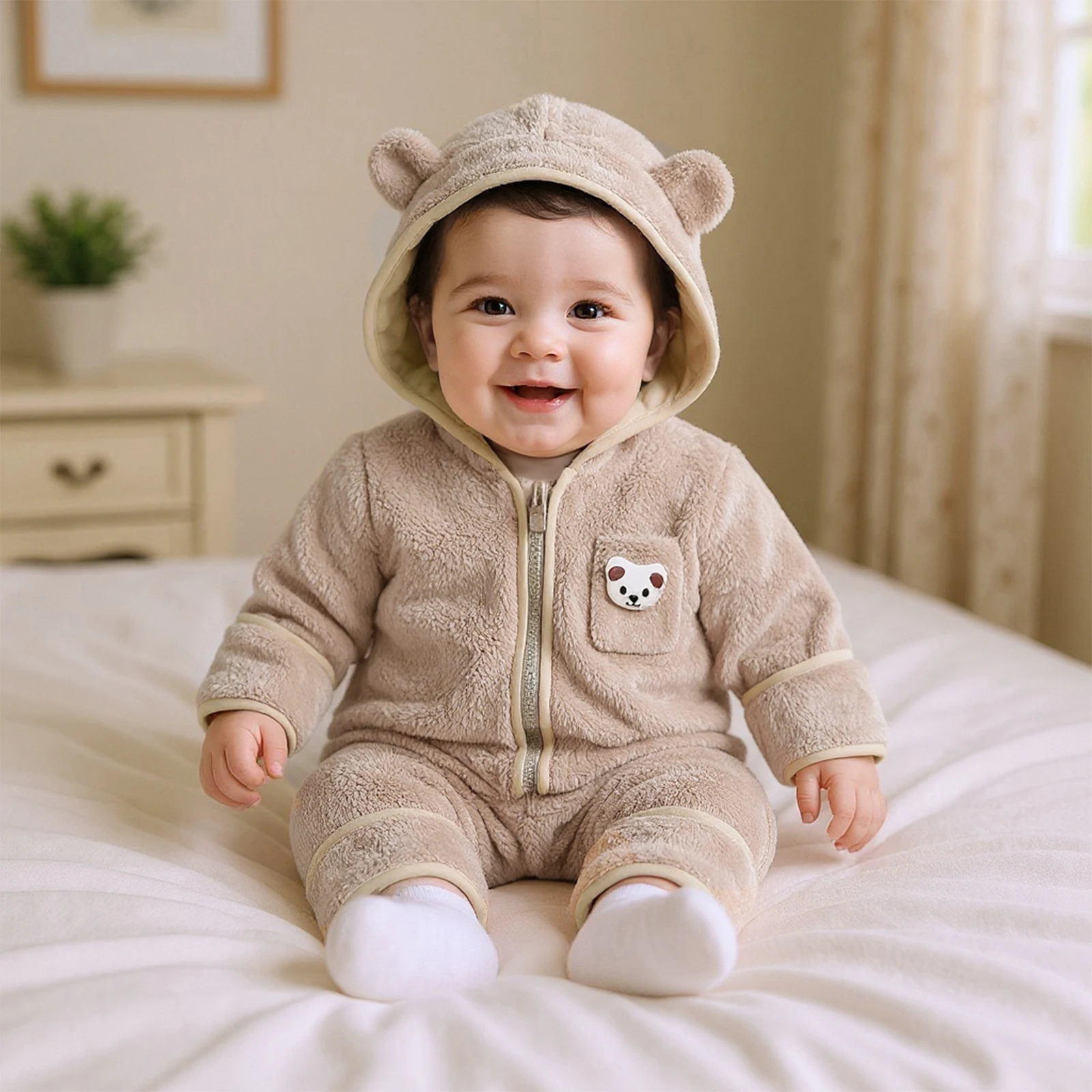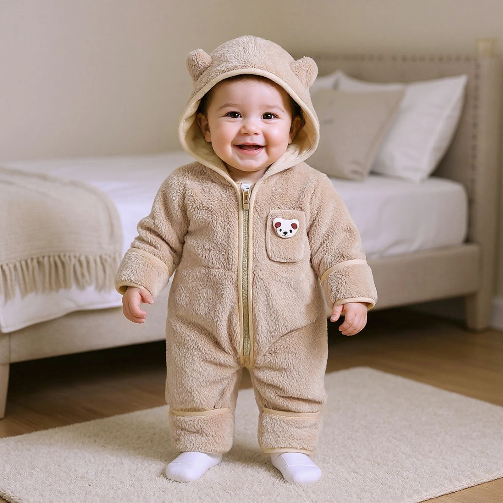 Discover the Cozy Comfort of Our Baby Boys Plush Hooded Jumpsuit