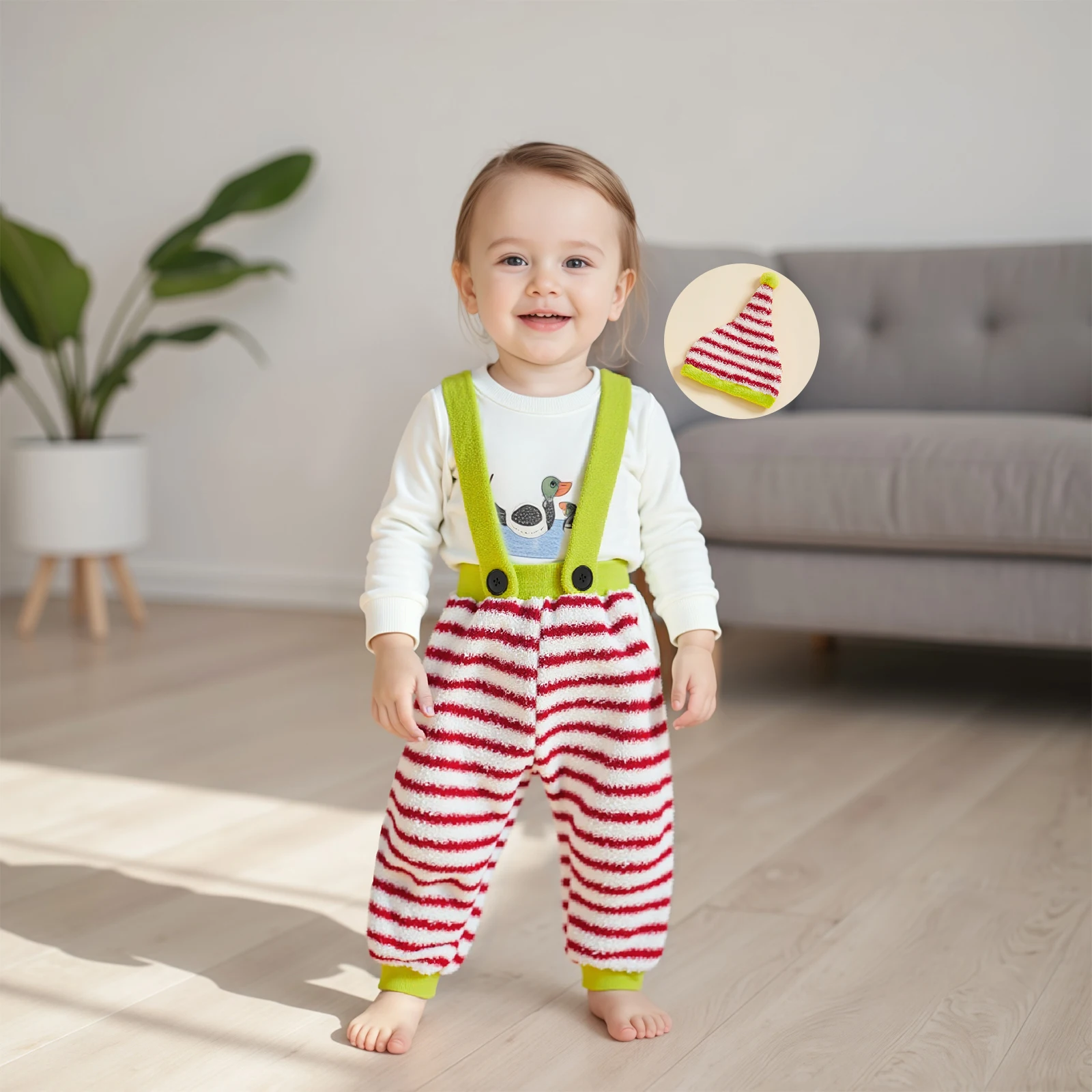 This adorable Baby Christmas Outfit set is perfect for your little one to celebrate the festive season in style! Featuring a cozy and comfortable design, this outfit includes loose fit overall pants with charming cross straps and a matching cap. Made from soft and durable materials, it ensures that your baby stays snug while looking cute as a button. Ideal for family gatherings, holiday photos, or simply enjoying the cozy winter days.