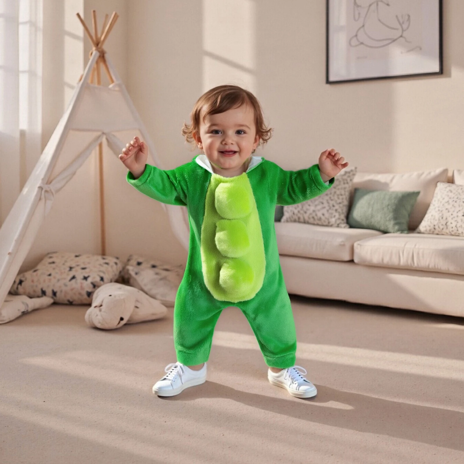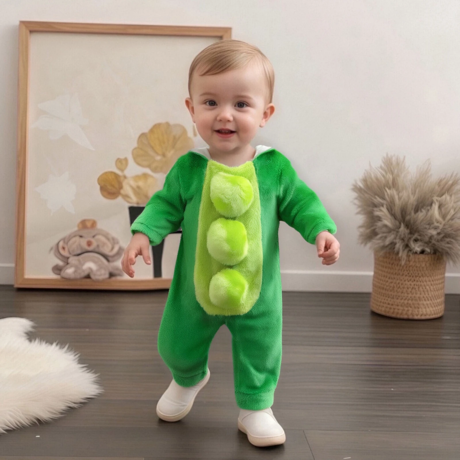 Introducing the Baby Winter Plush Romper Pea Costume, a delightful and snug outfit designed for your little one. Perfectly crafted for cold weather, this long sleeve, full-length jumpsuit ensures your baby stays warm and comfortable while looking absolutely adorable. The soft and plush material will keep your baby cozy during all their winter adventures, making it an essential addition to their wardrobe.