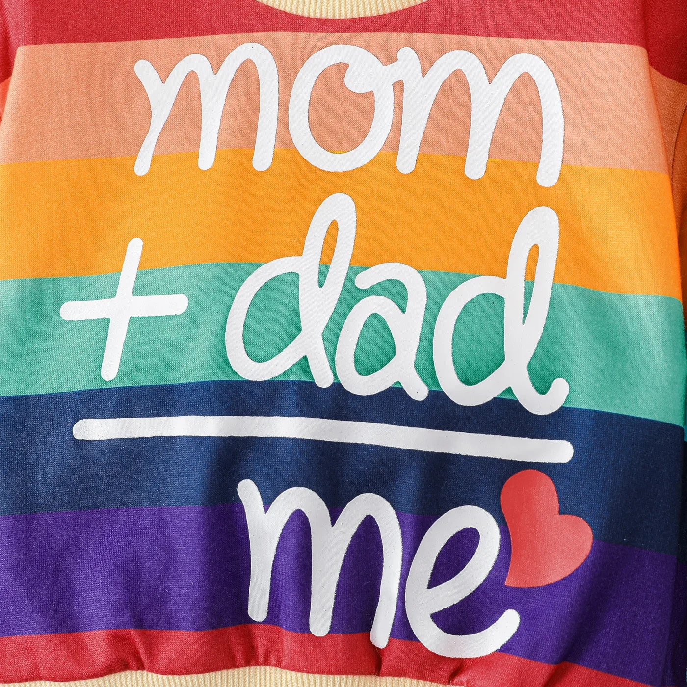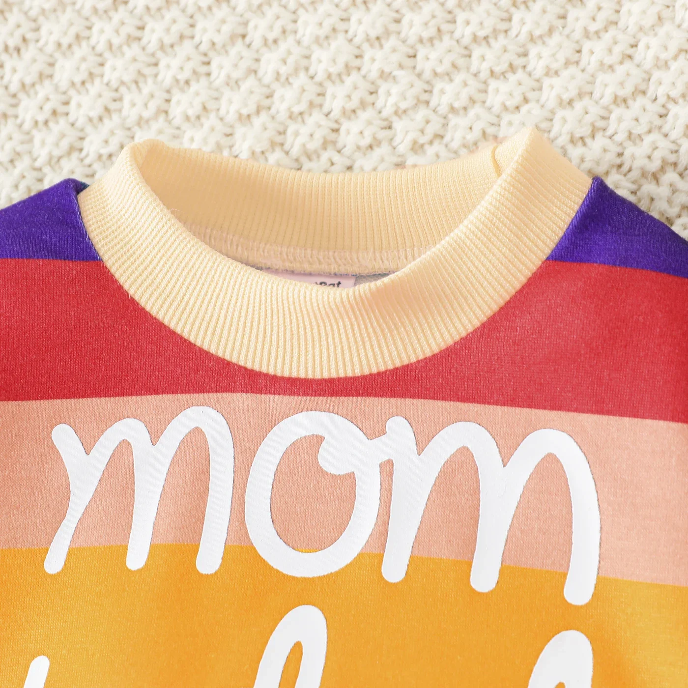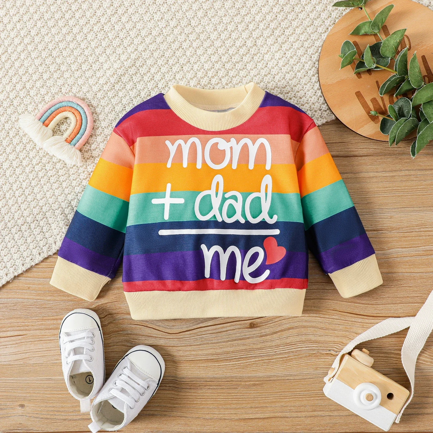 Introducing the PatPat Baby Boy/Girl Heart & Letter Print Rainbow Colorblock Long-sleeve Sweatshirt, a perfect blend of style and comfort for your little ones. Designed for both boys and girls, this casual sweatshirt is ideal for outdoor adventures or lounging at home. With its vibrant colors and playful prints, it adds a touch of fun to any outfit while ensuring your baby stays cozy and warm during the spring and autumn seasons.