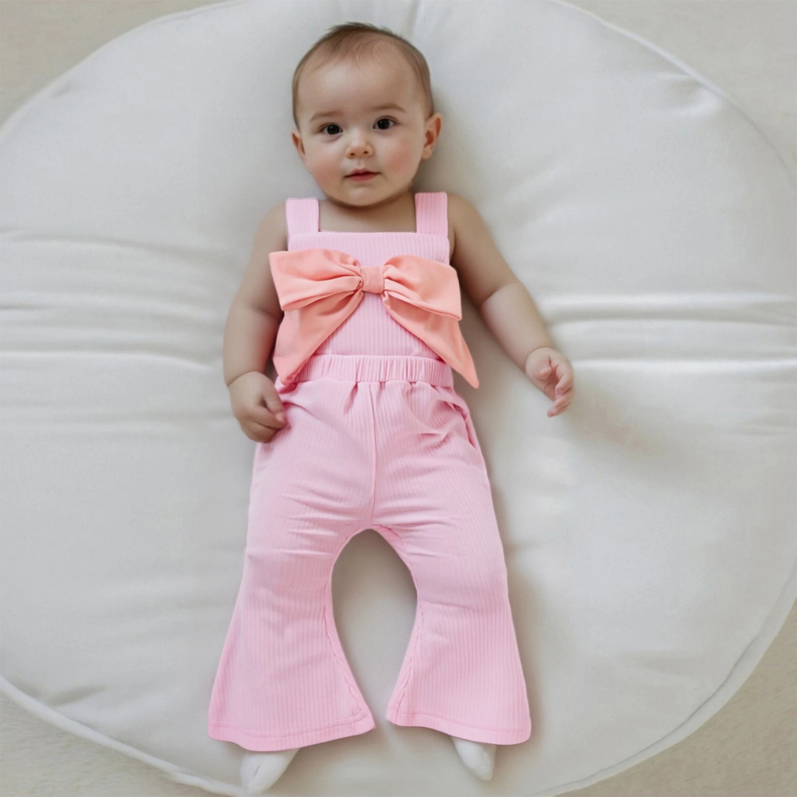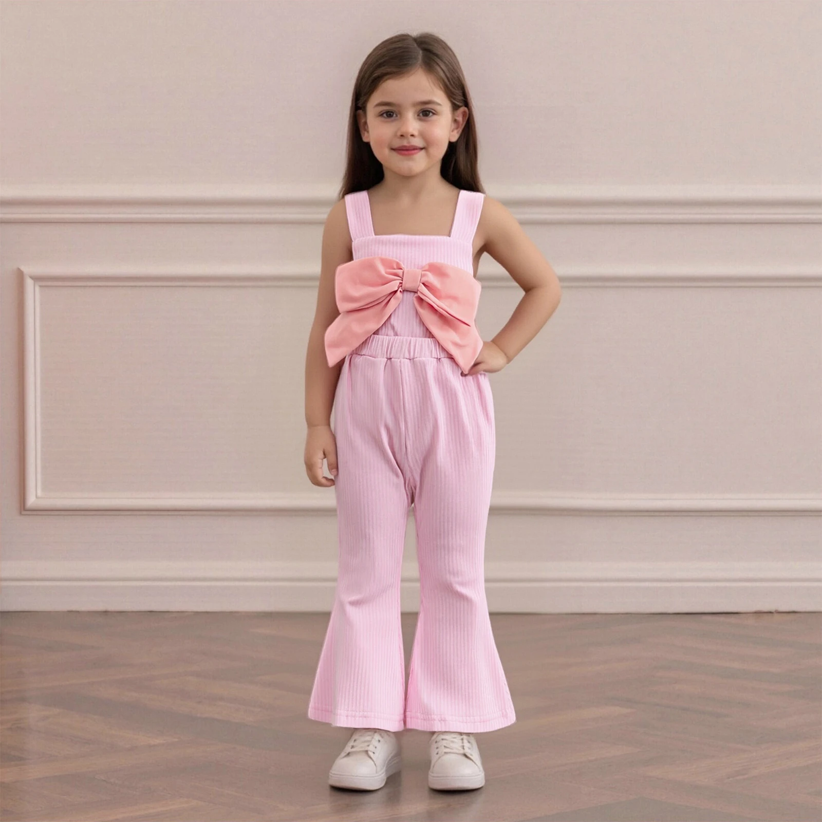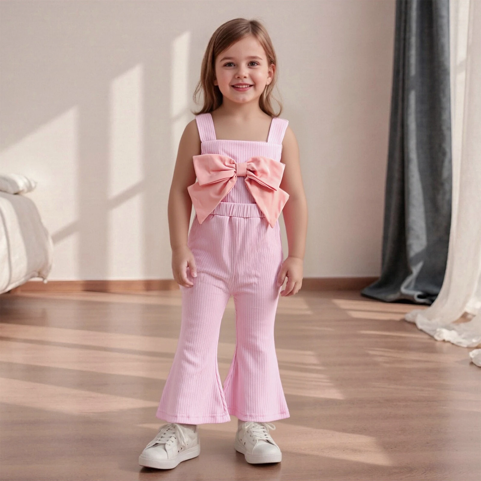 Looking for the perfect outfit that combines comfort, style, and versatility for your little girl? The Toddler Baby Girl Jumpsuit is designed with your child’s needs in mind. This adorable jumpsuit features a loose fit with a charming decorative bow, making it an ideal choice for any occasion, whether it’s playtime, a family gathering, or a day out. With its stylish bell bottom design and ribbed texture, this jumpsuit offers both fashion and function, ensuring your toddler looks cute while being free to move and explore.