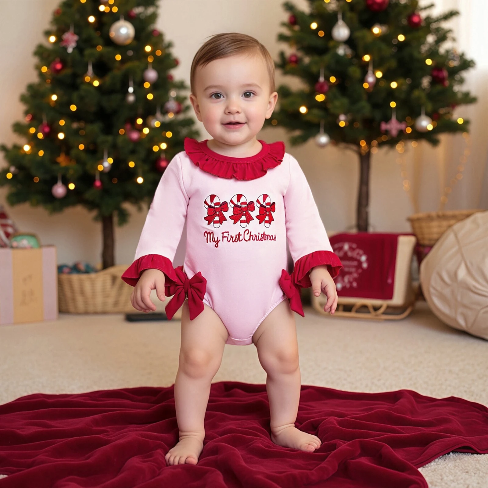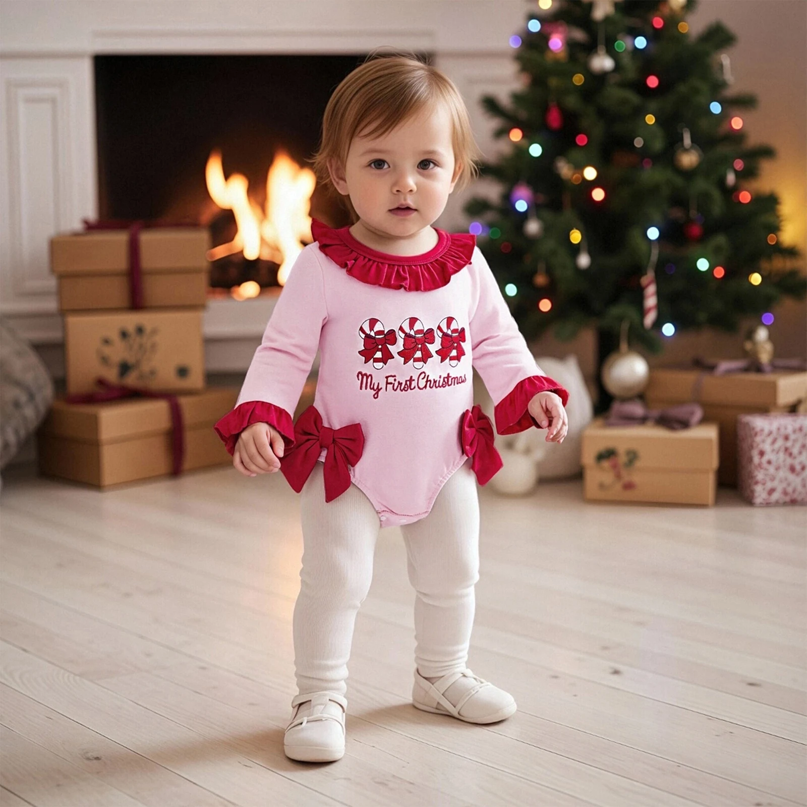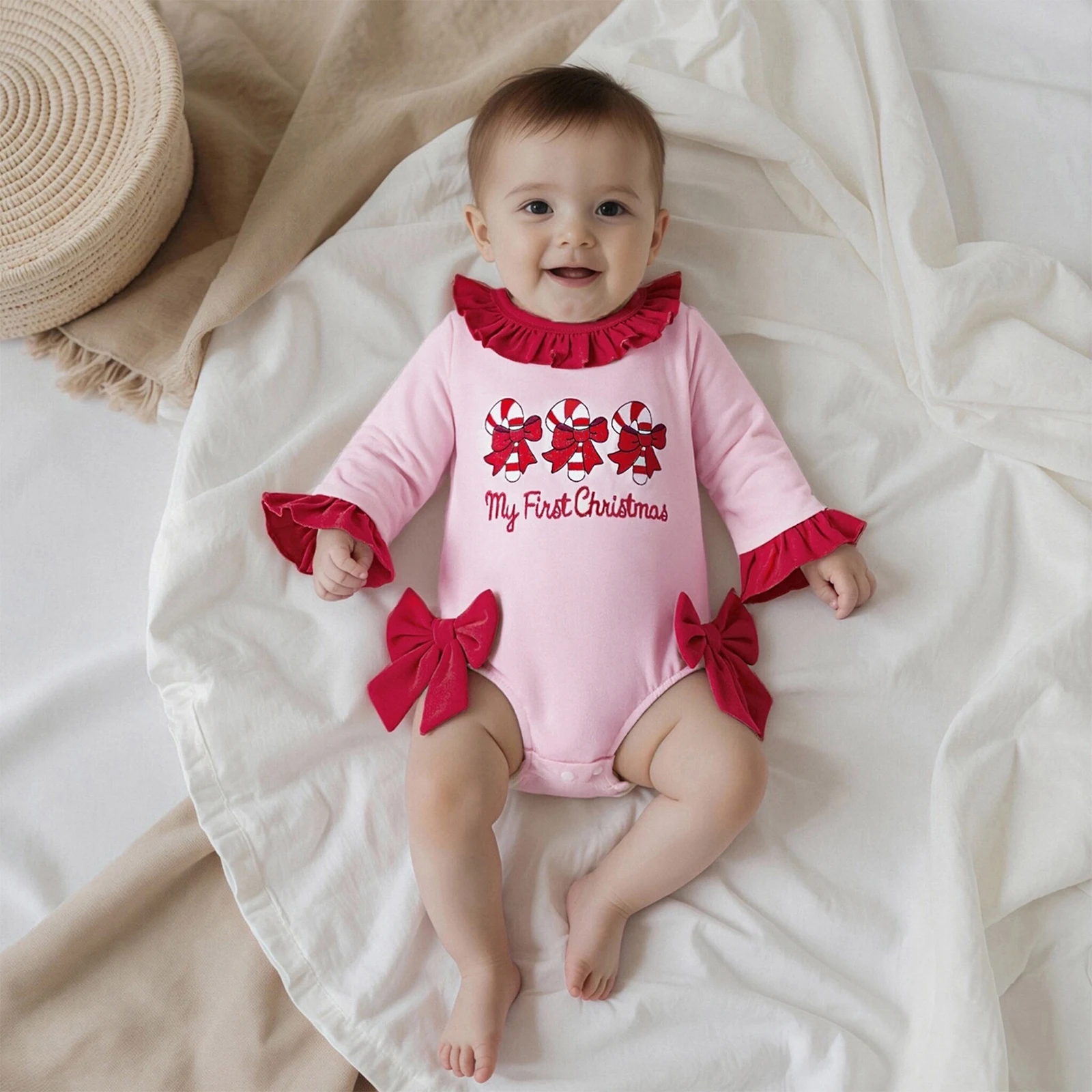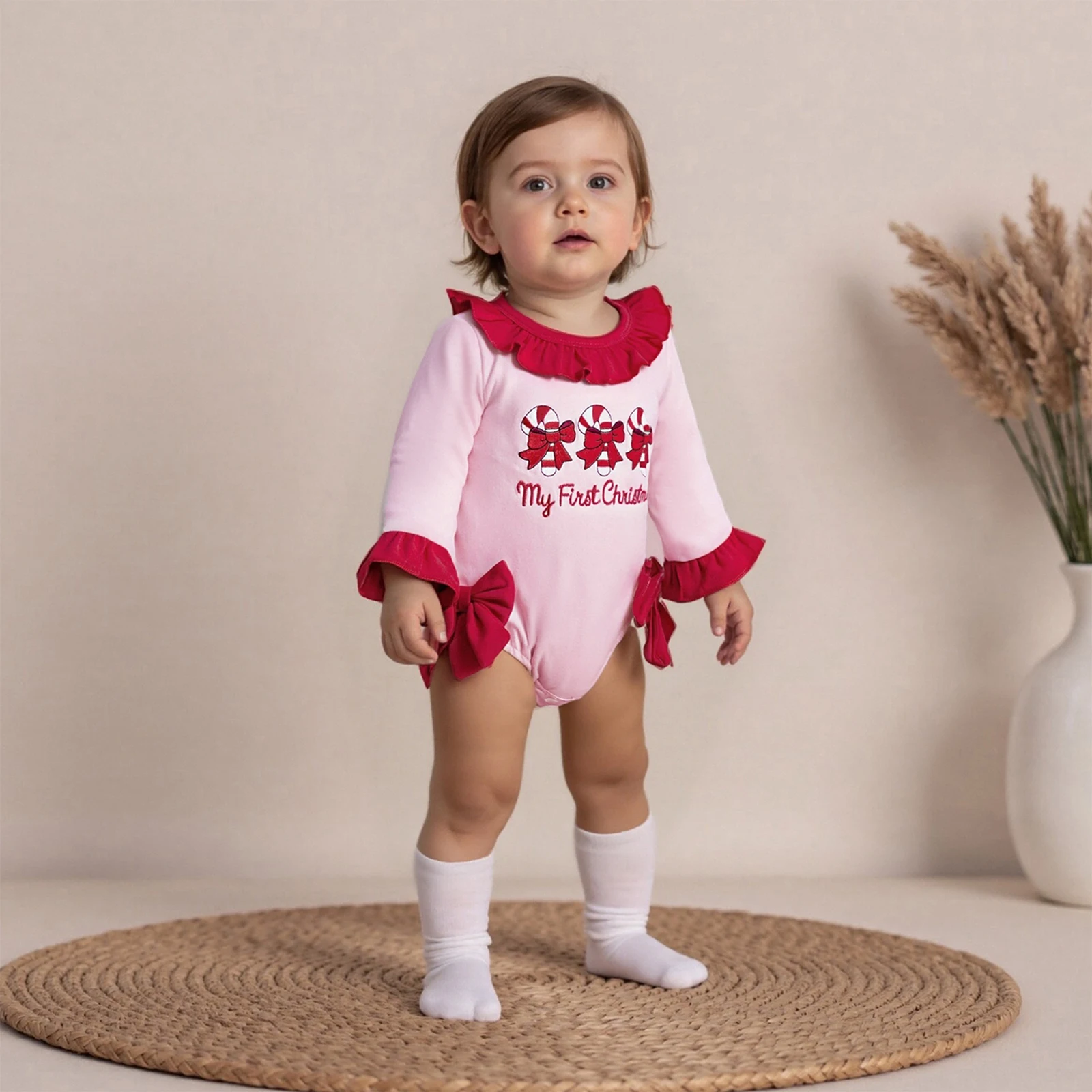 • Stylish Design: Featuring adorable ruffles and a festive candy cane pattern, your baby will look absolutely cute and trendy at any holiday gathering.