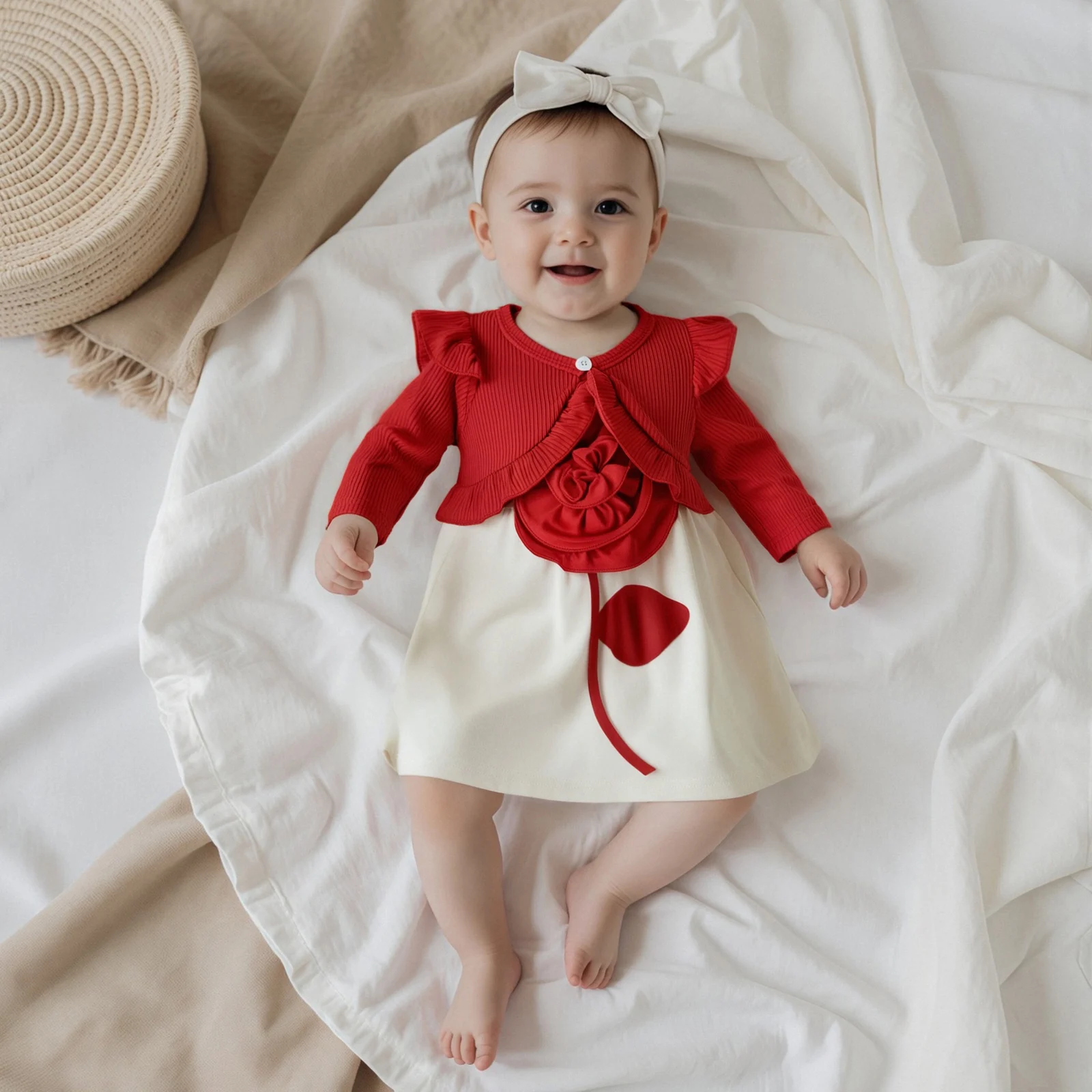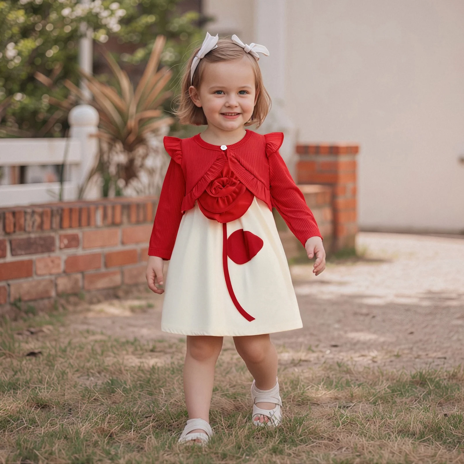 • Stylish Design: The unique ruffled cardigan and eye-catching 3D flower embellishments make this outfit perfect for both casual and special events.