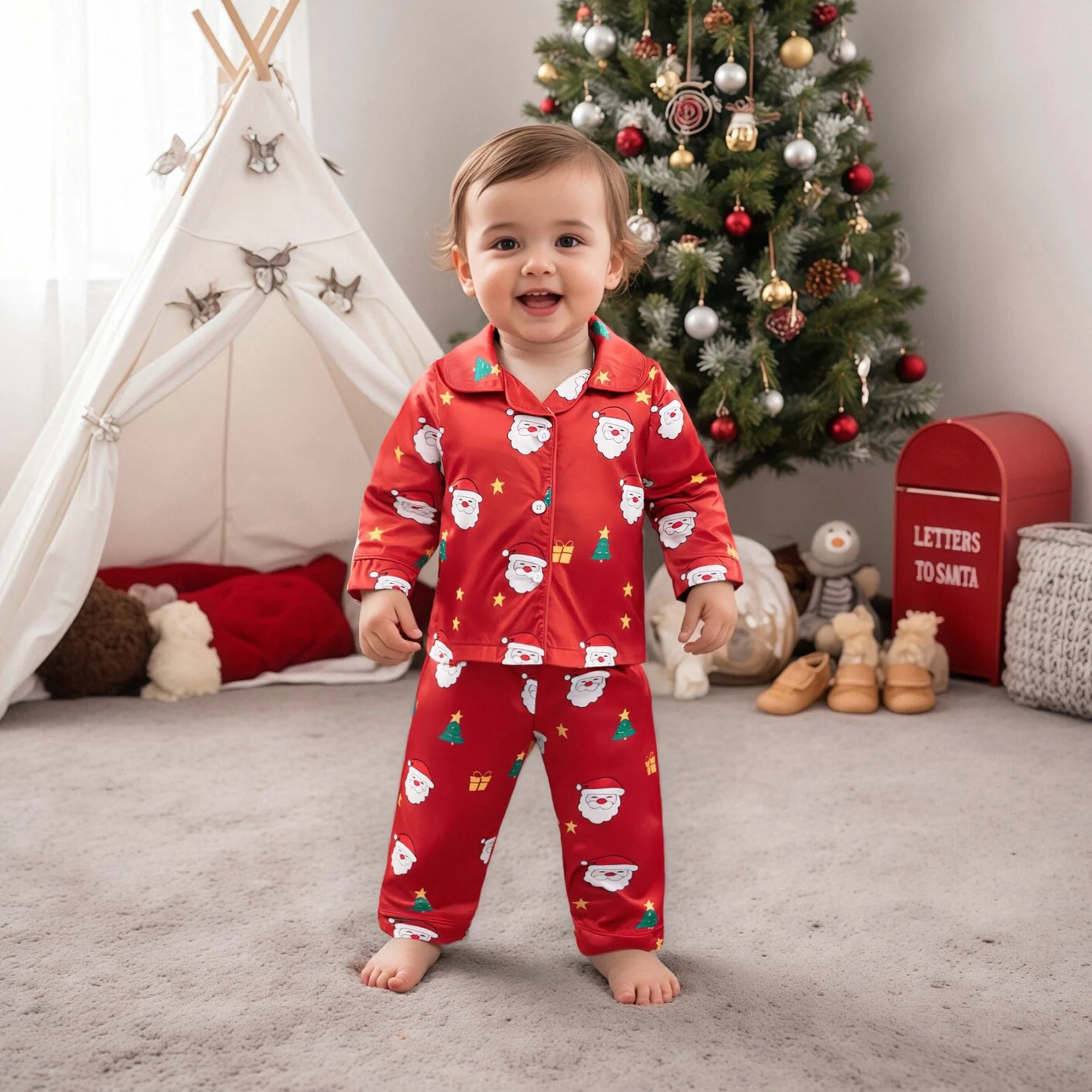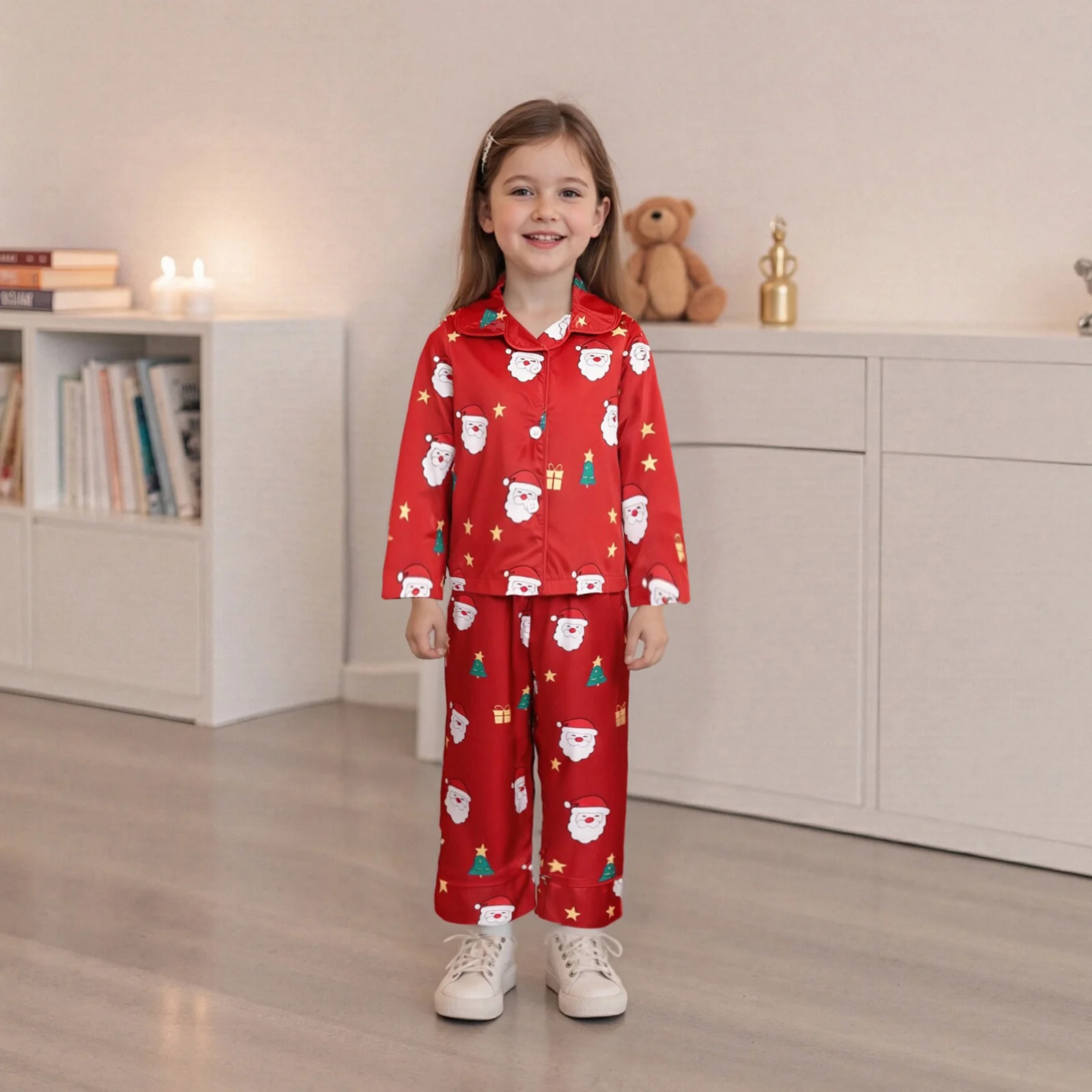 Get your little one ready for the festive season with our adorable Girls Christmas Pajamas Set. This delightful sleepwear set features a charming Santa print and is designed for ultimate comfort and style. Perfect for cozy nights in, holiday parties, or family gatherings, this pajama set will make bedtime a fun and exciting experience for your child.