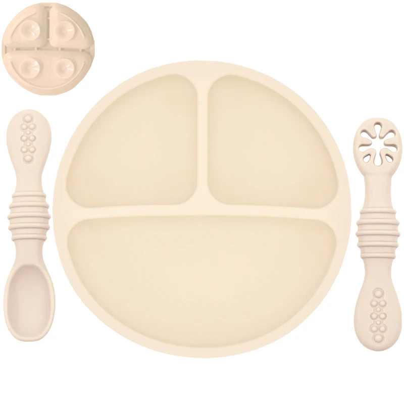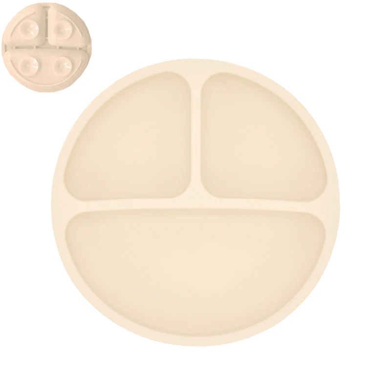 Yes, the plate features a suction base that helps it stick to the table, reducing the chances of spills and mess during mealtime.