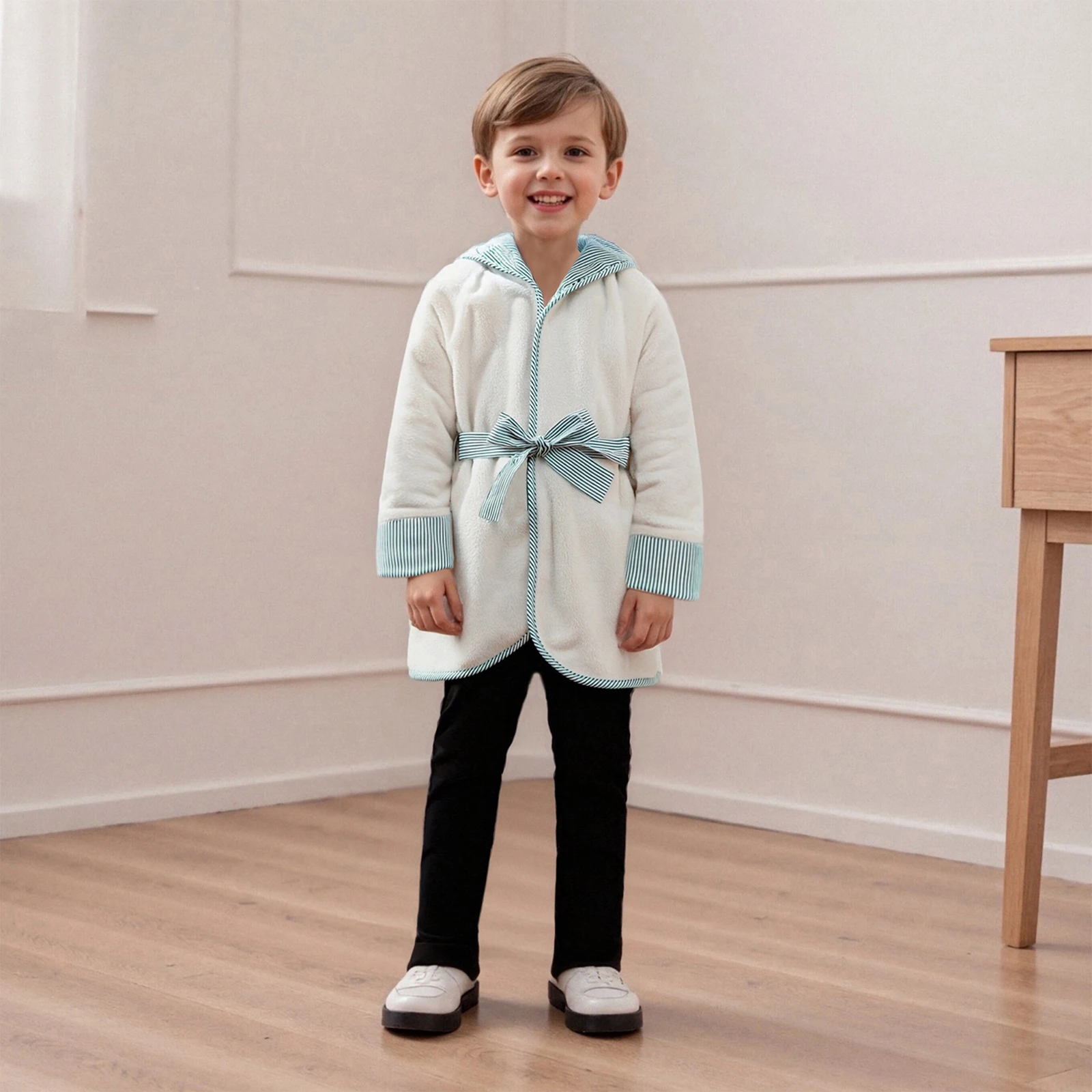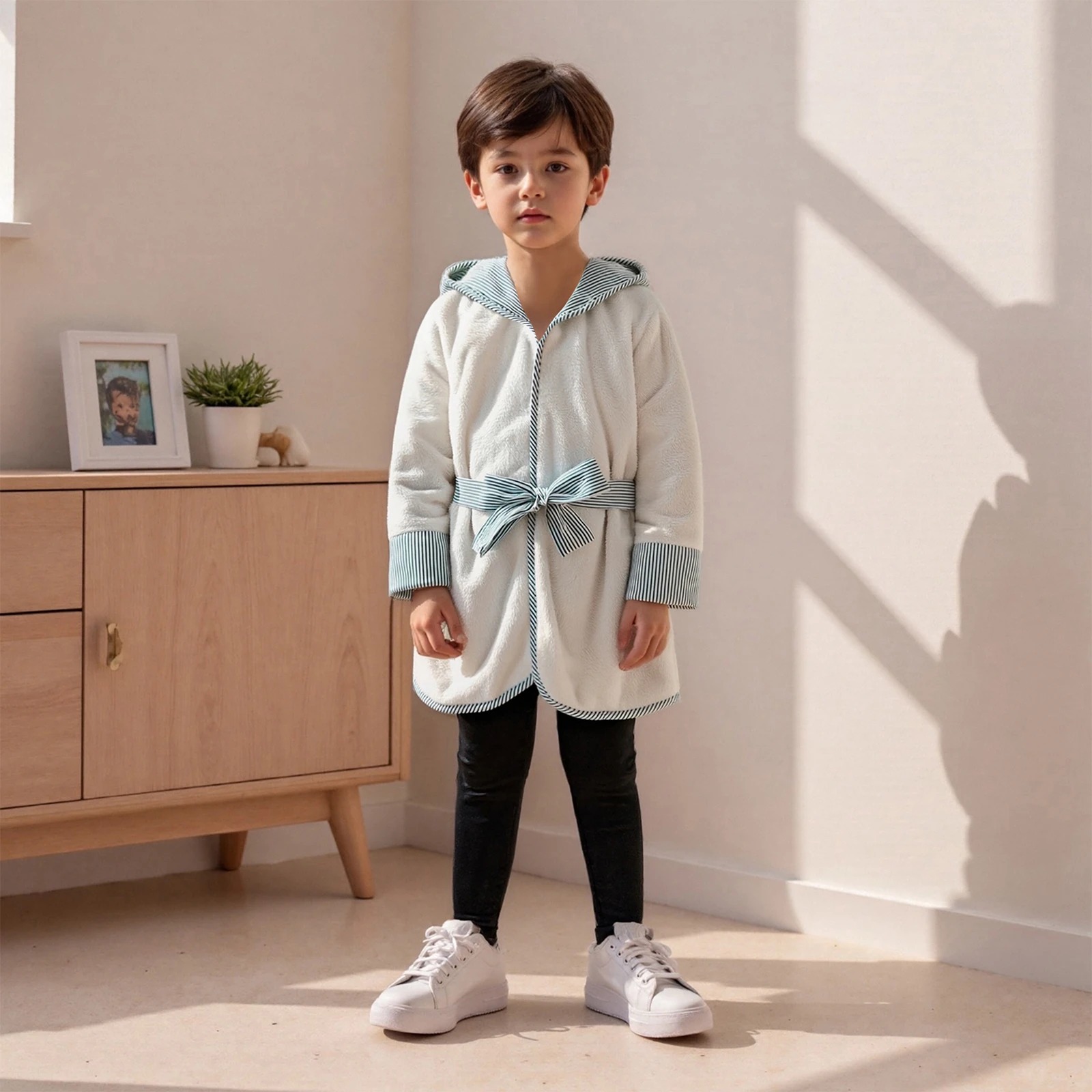 Wrap your children in comfort and warmth with our Boys Girls Bathrobe. Designed for both boys and girls, this soft long sleeve belted hooded robe is perfect for lounging around the house, post-bath relaxation, or cozy sleepovers. Made from high-quality polyester, this bathrobe combines functionality with a stylish design, ensuring your child looks adorable while feeling snug.