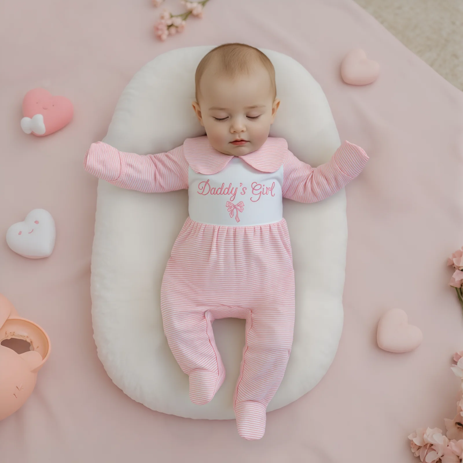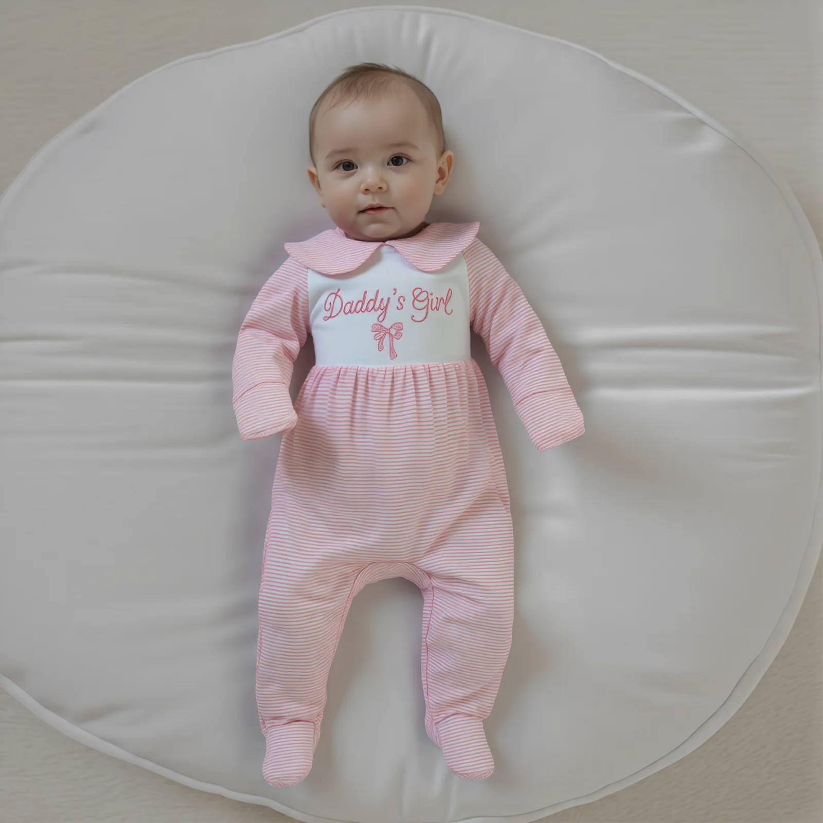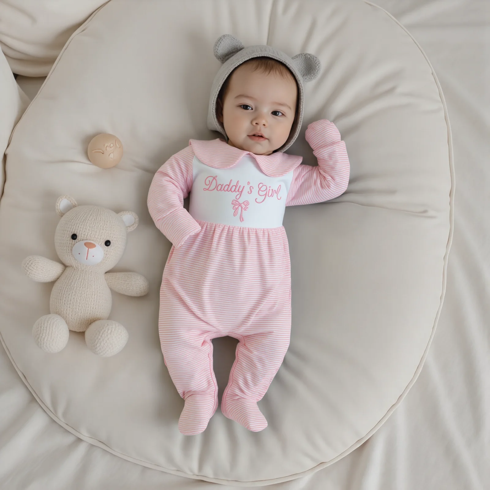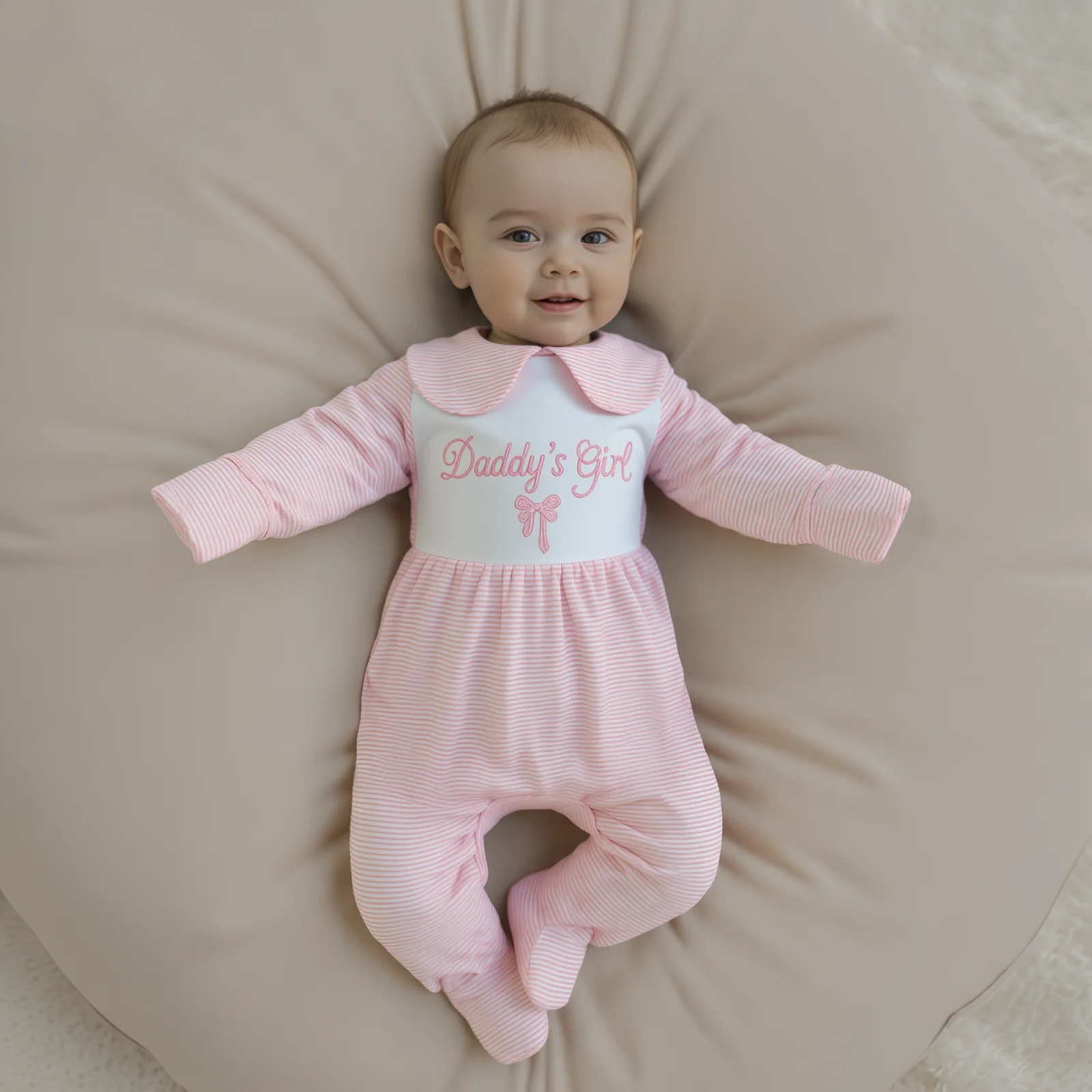 The Baby Girls Fall Romper is the perfect blend of style and comfort for your little one. Designed with a charming stripe print and delightful letter embroidery, this long-sleeve jumpsuit is ideal for any occasion, from playdates to family outings. The elegant doll collar adds a touch of sophistication while ensuring your baby stays cozy and fashionable throughout the day.