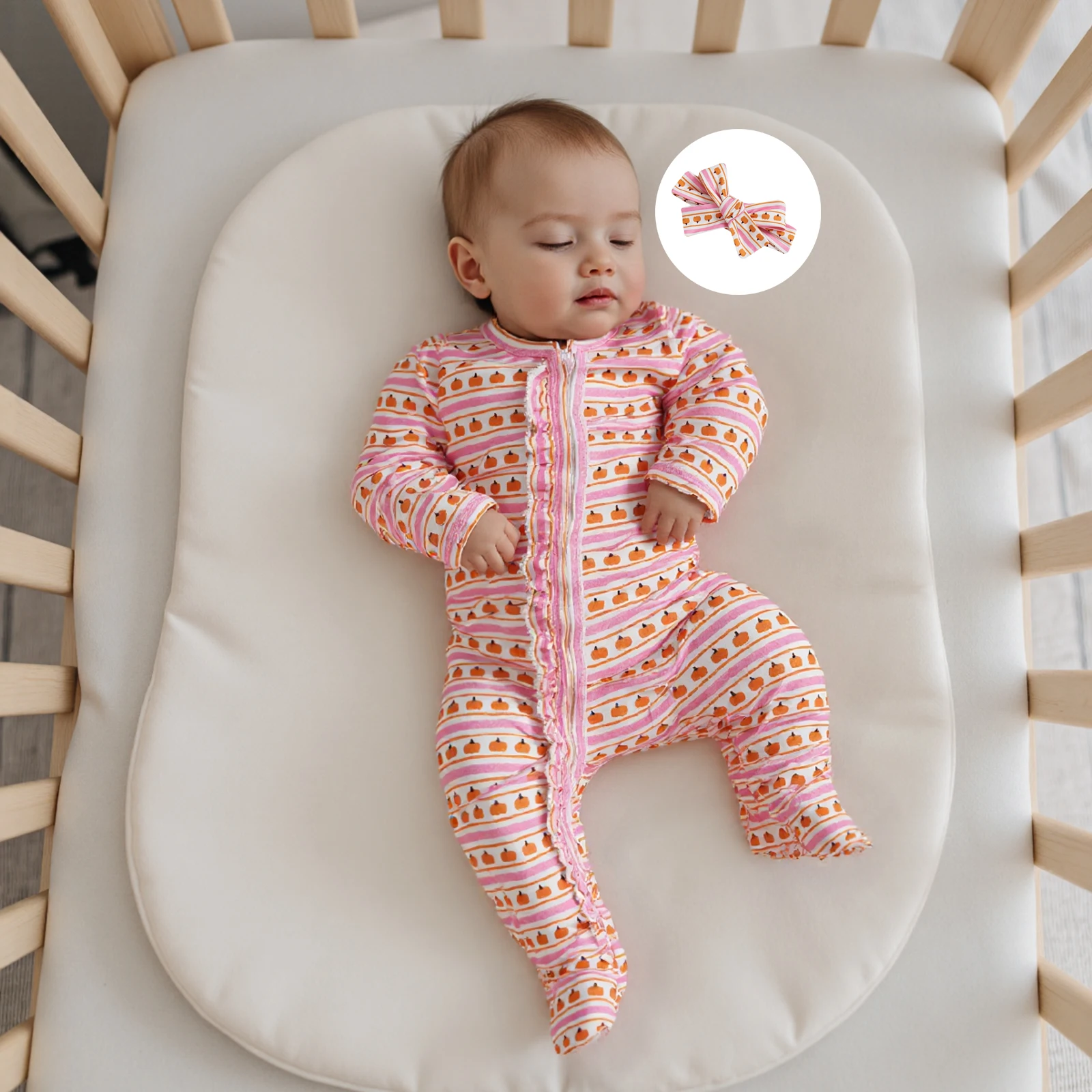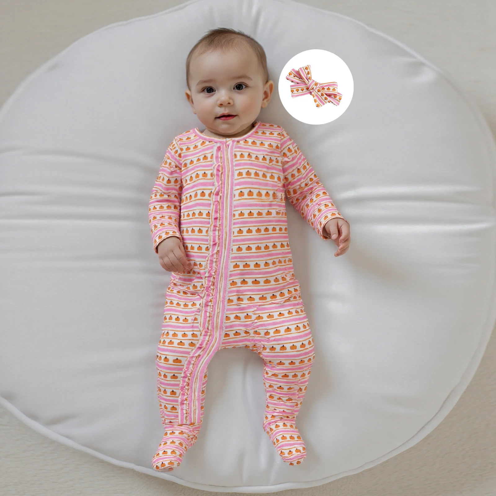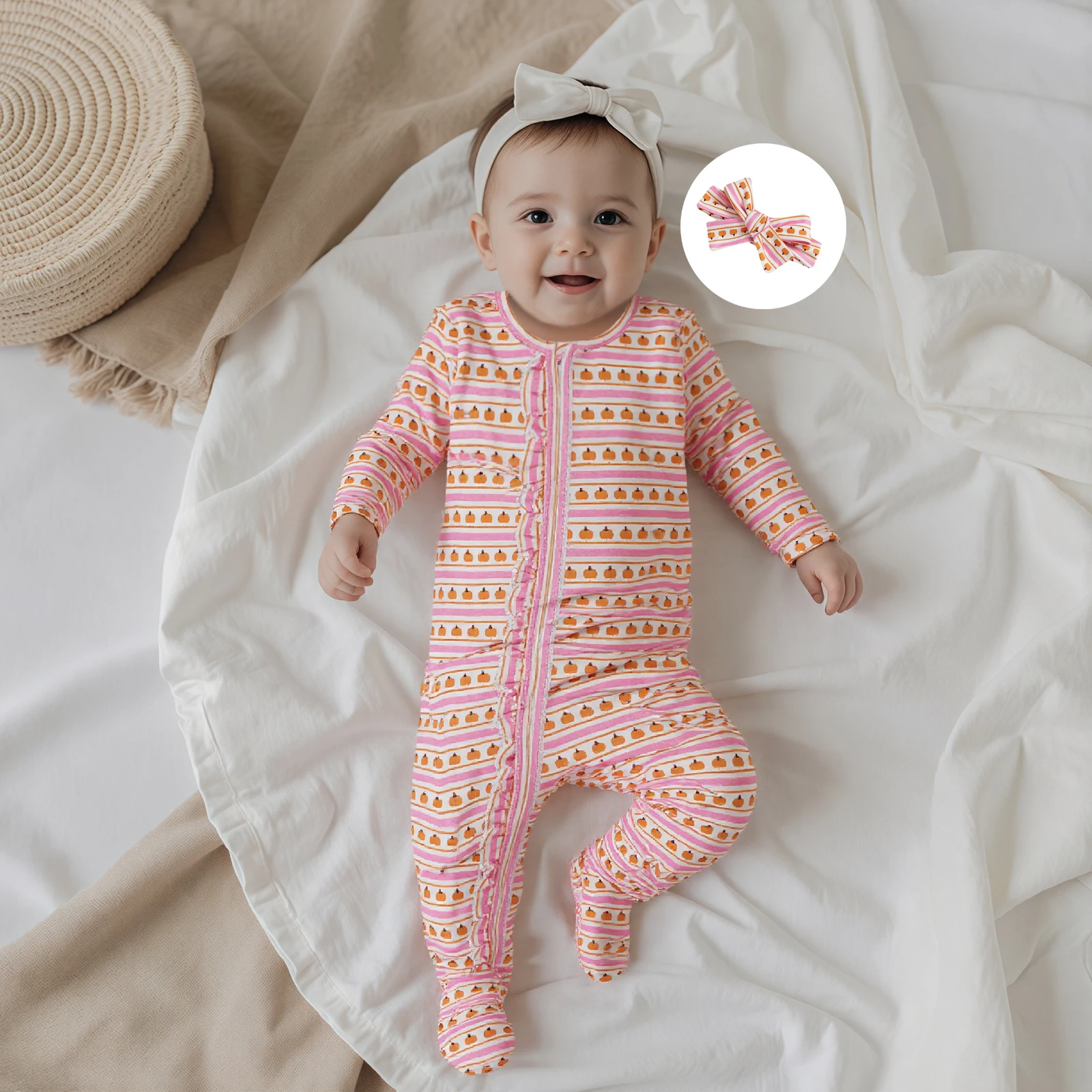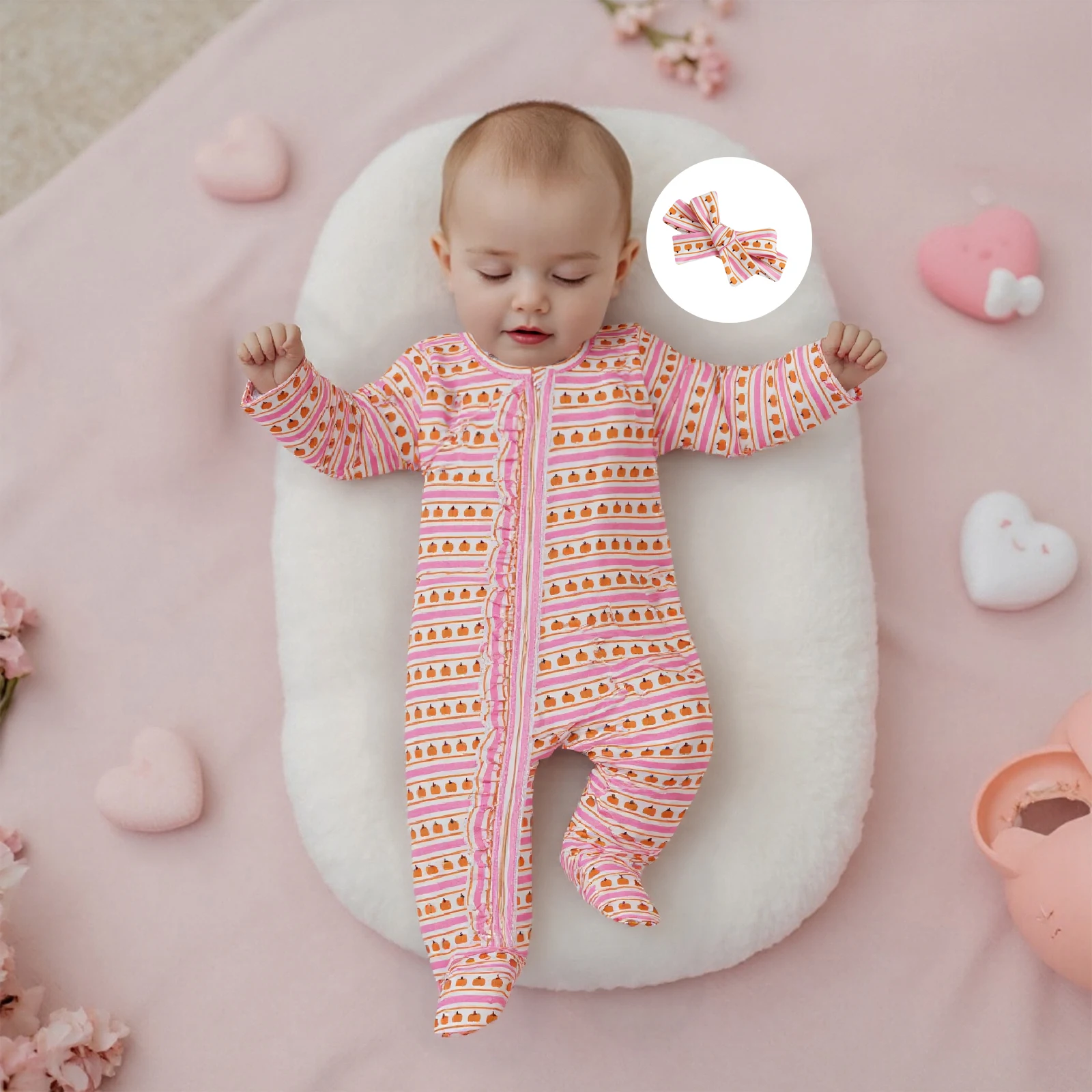 Get your little one ready for the festive season with the adorable Baby Girl Halloween Footie Long Sleeve Jumpsuit. This cute and stylish outfit is perfect for newborns and infants, making it an ideal choice for autumn festivals and Halloween celebrations. Designed with comfort in mind, this jumpsuit features a fun pumpkin striped pattern that is sure to delight both parents and little ones alike!