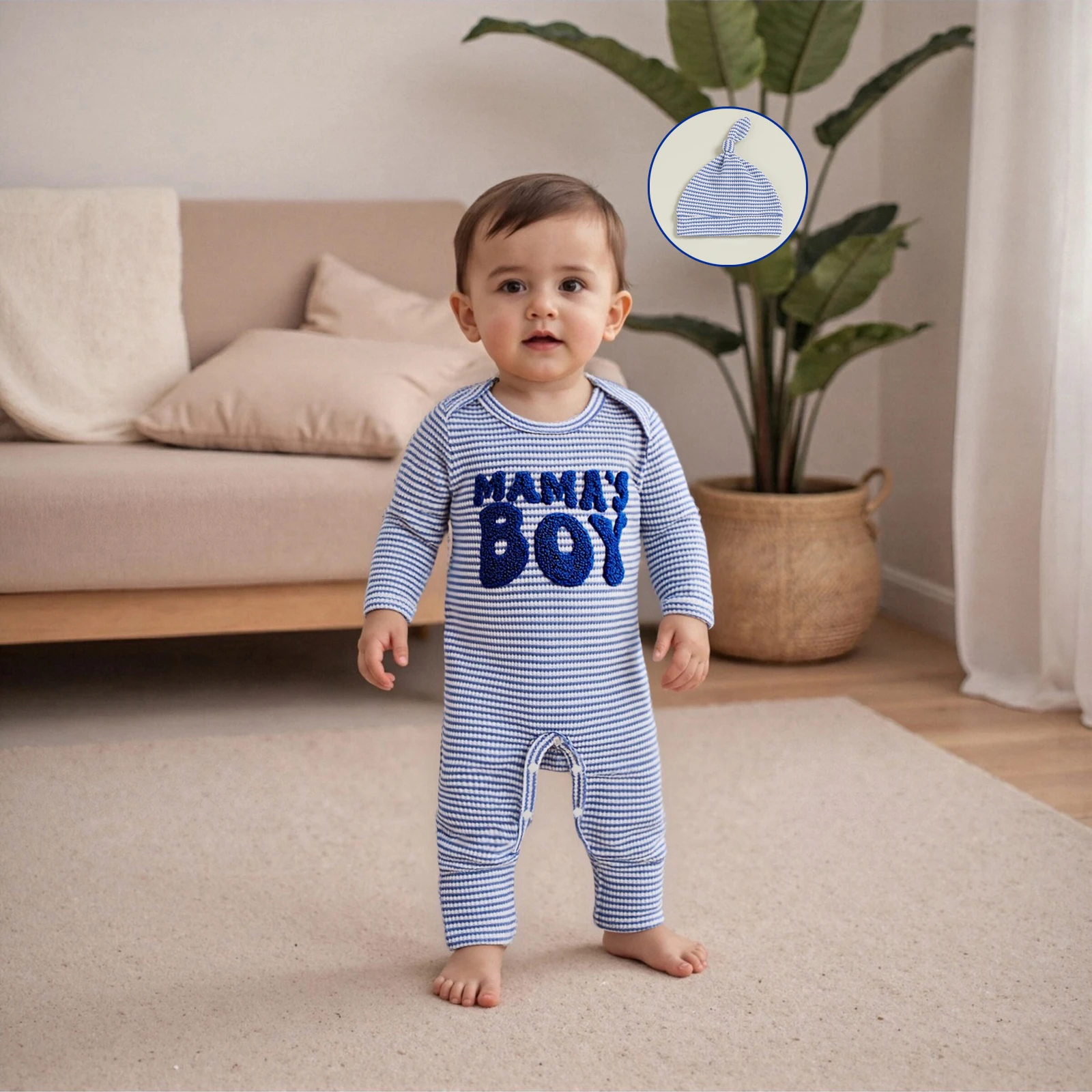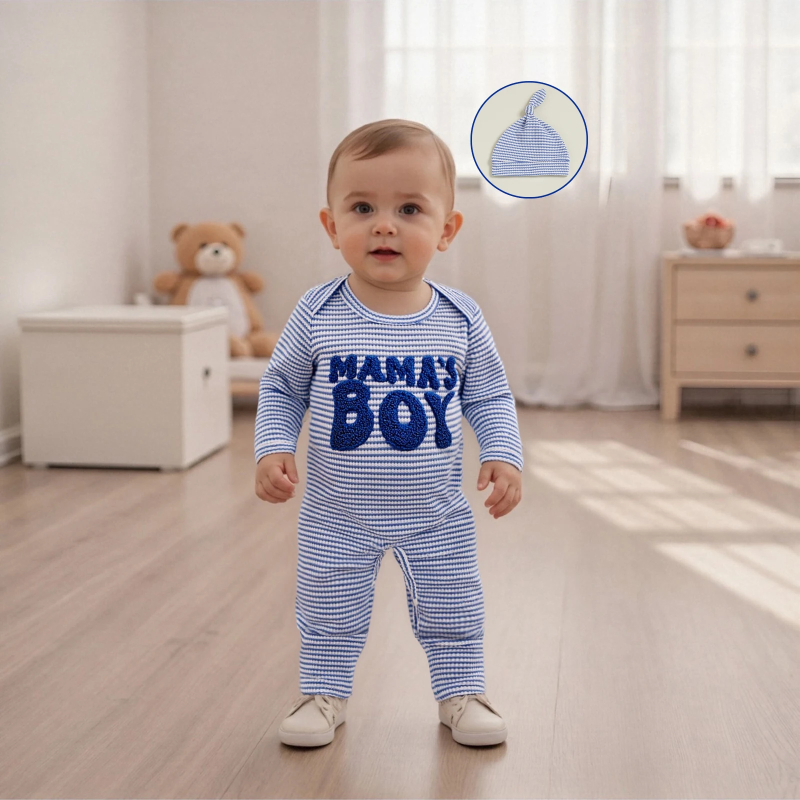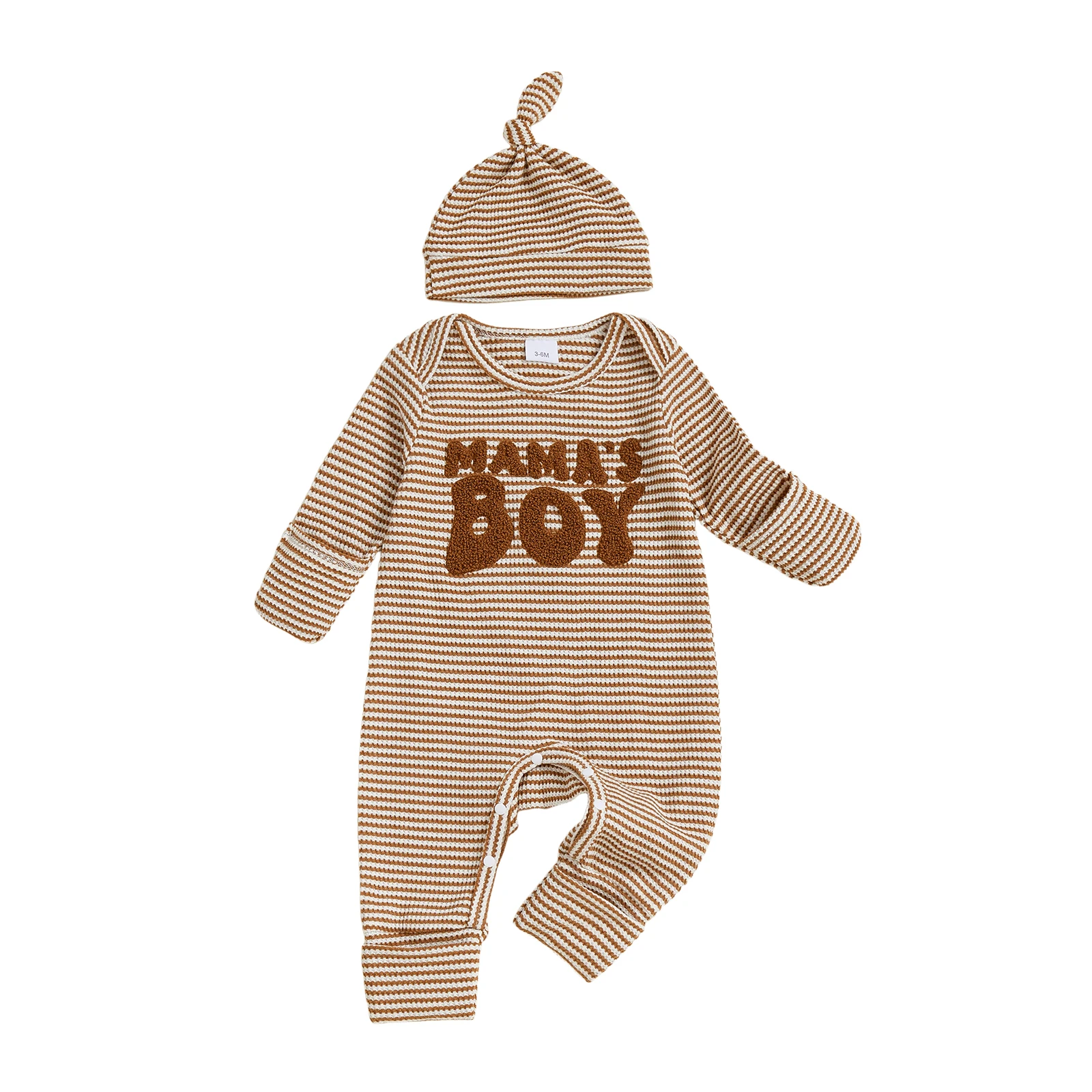 Introducing the Baby Boy Fall Stripe Romper, a delightful addition to your little one’s wardrobe. This charming long-sleeve jumpsuit features an adorable striped pattern complemented by cute letter embroidery, making it perfect for both playtime and cozy outings. The included hat adds an extra layer of comfort and style, ensuring your baby looks adorable while staying warm.
