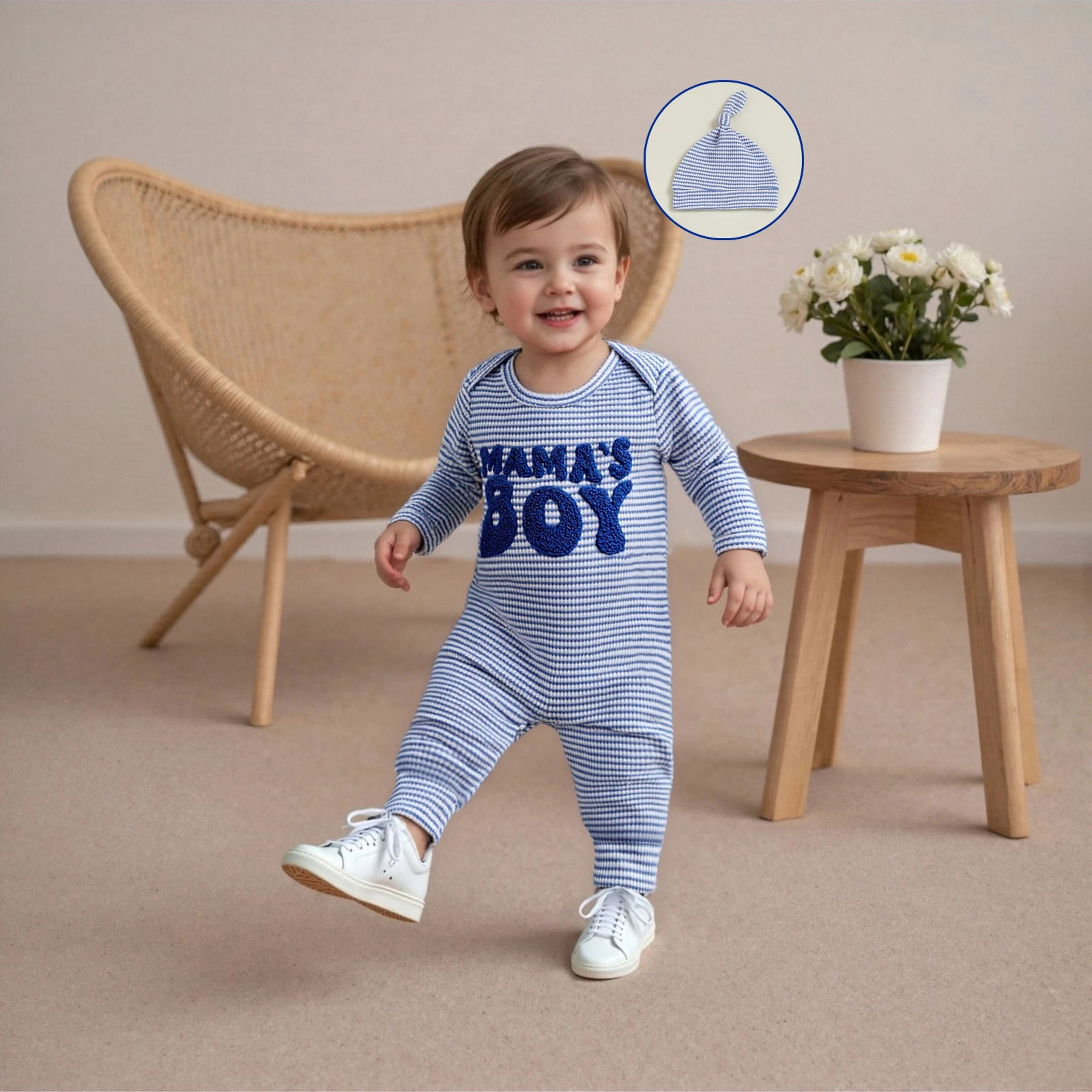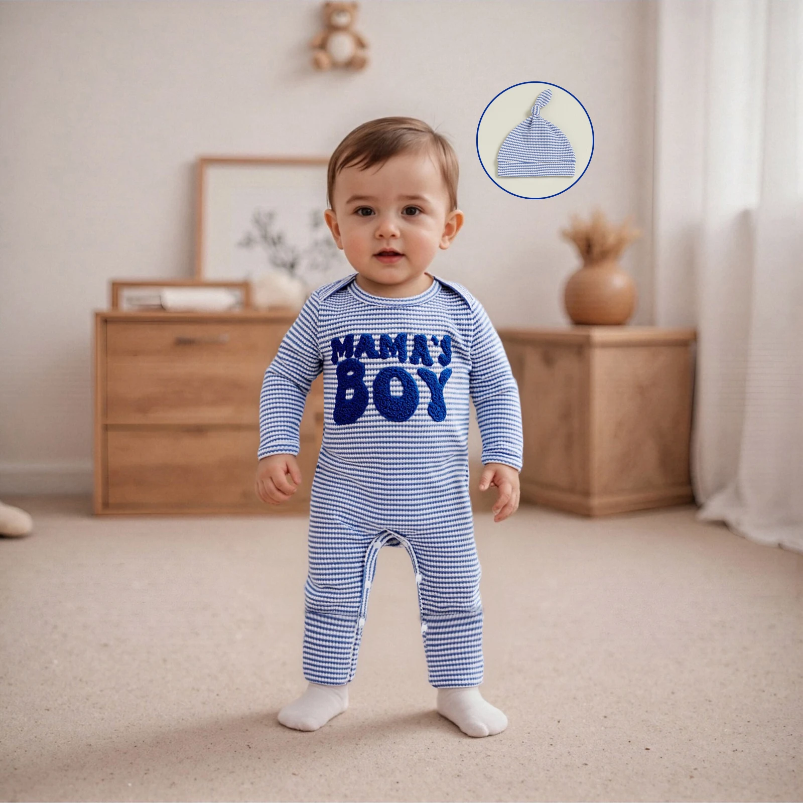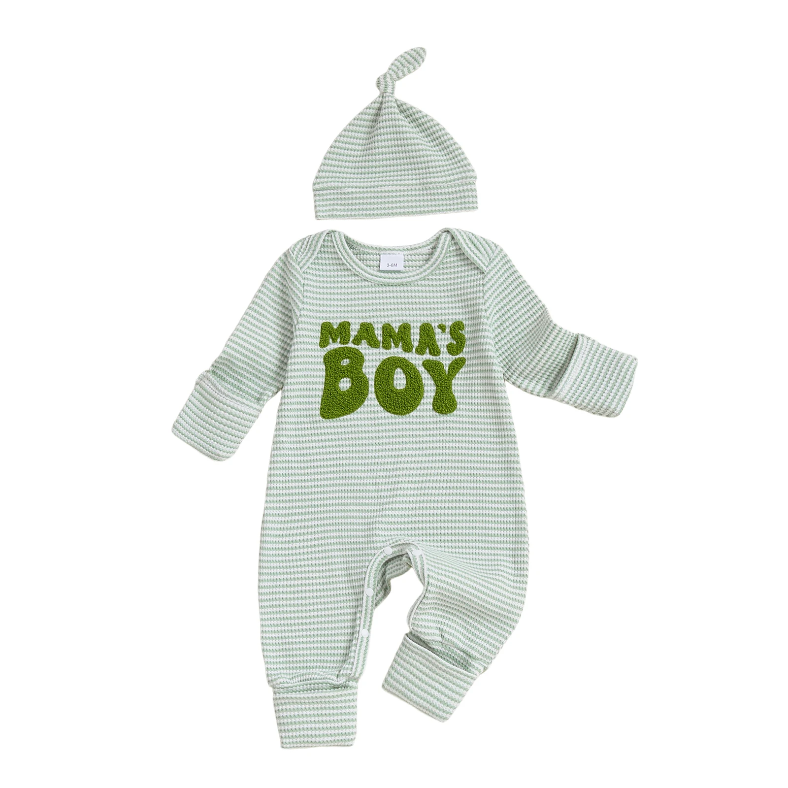 Introducing the Baby Boy Fall Stripe Romper, a delightful addition to your little one’s wardrobe. This charming long-sleeve jumpsuit features an adorable striped pattern complemented by cute letter embroidery, making it perfect for both playtime and cozy outings. The included hat adds an extra layer of comfort and style, ensuring your baby looks adorable while staying warm.