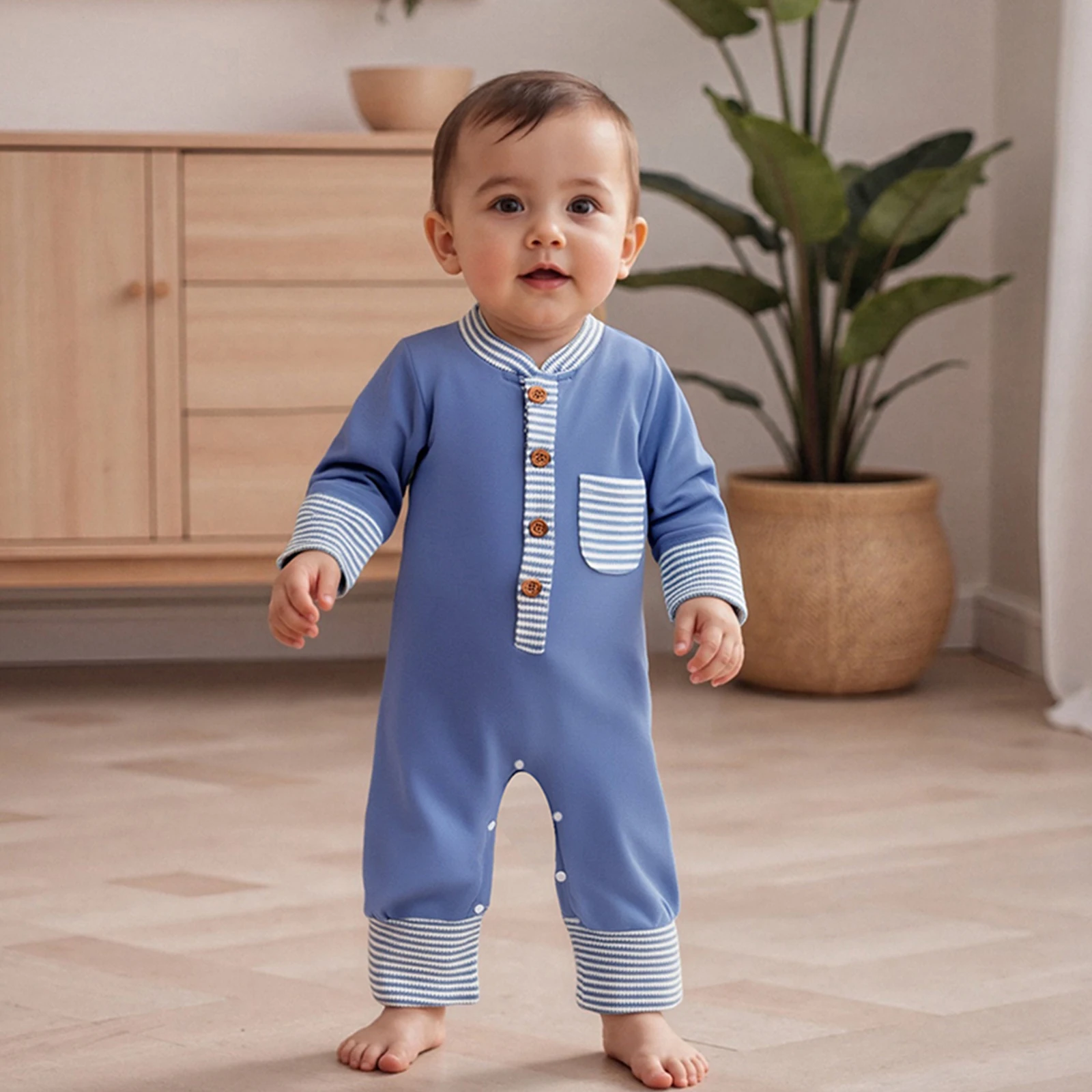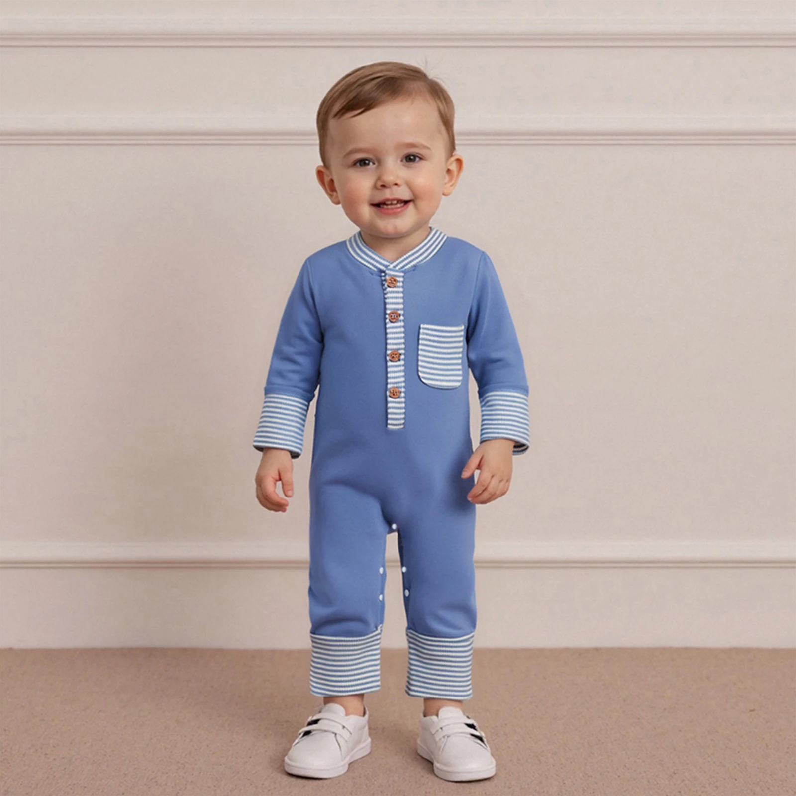 Introducing the Baby Boys Jumpsuit, a perfect blend of style and comfort designed for your little one. This long sleeve striped patchwork romper is ideal for casual outings in the autumn season and beyond. With its charming design and soft fabric, it’s a delightful addition to your baby’s wardrobe that ensures they look adorable while feeling cozy.