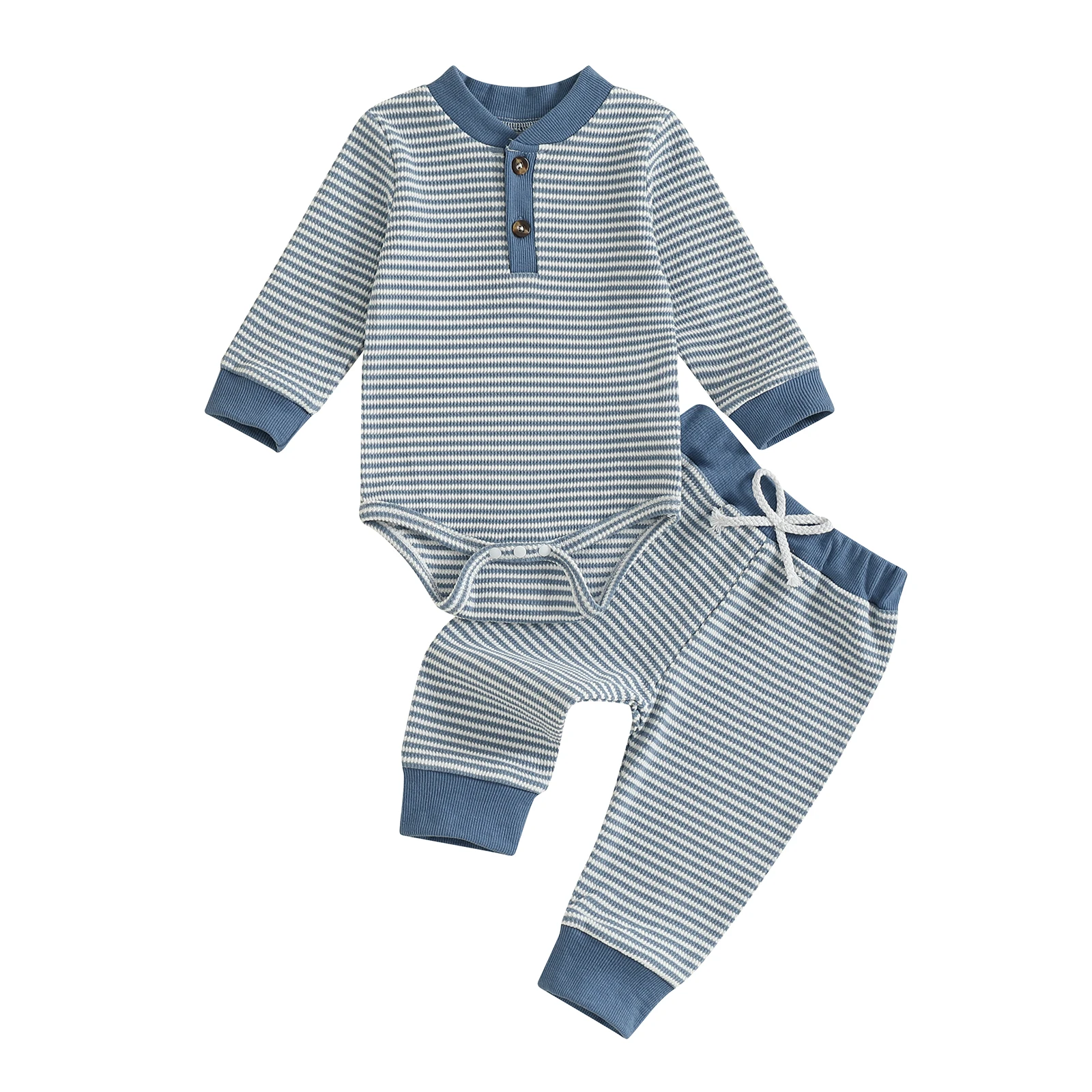 Introducing the Baby Boy 2 Piece Outfits, a stylish and comfortable set designed for your little adventurer. This fashionable striped long sleeve crew neck romper combined with elastic waist pants makes for the ideal outfit for any occasion, whether it’s playtime at home or a day out with family. Crafted from high-quality materials, this outfit ensures that your baby stays cozy and fashionable all day long.