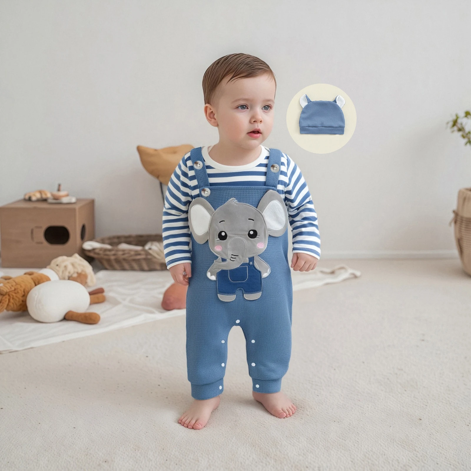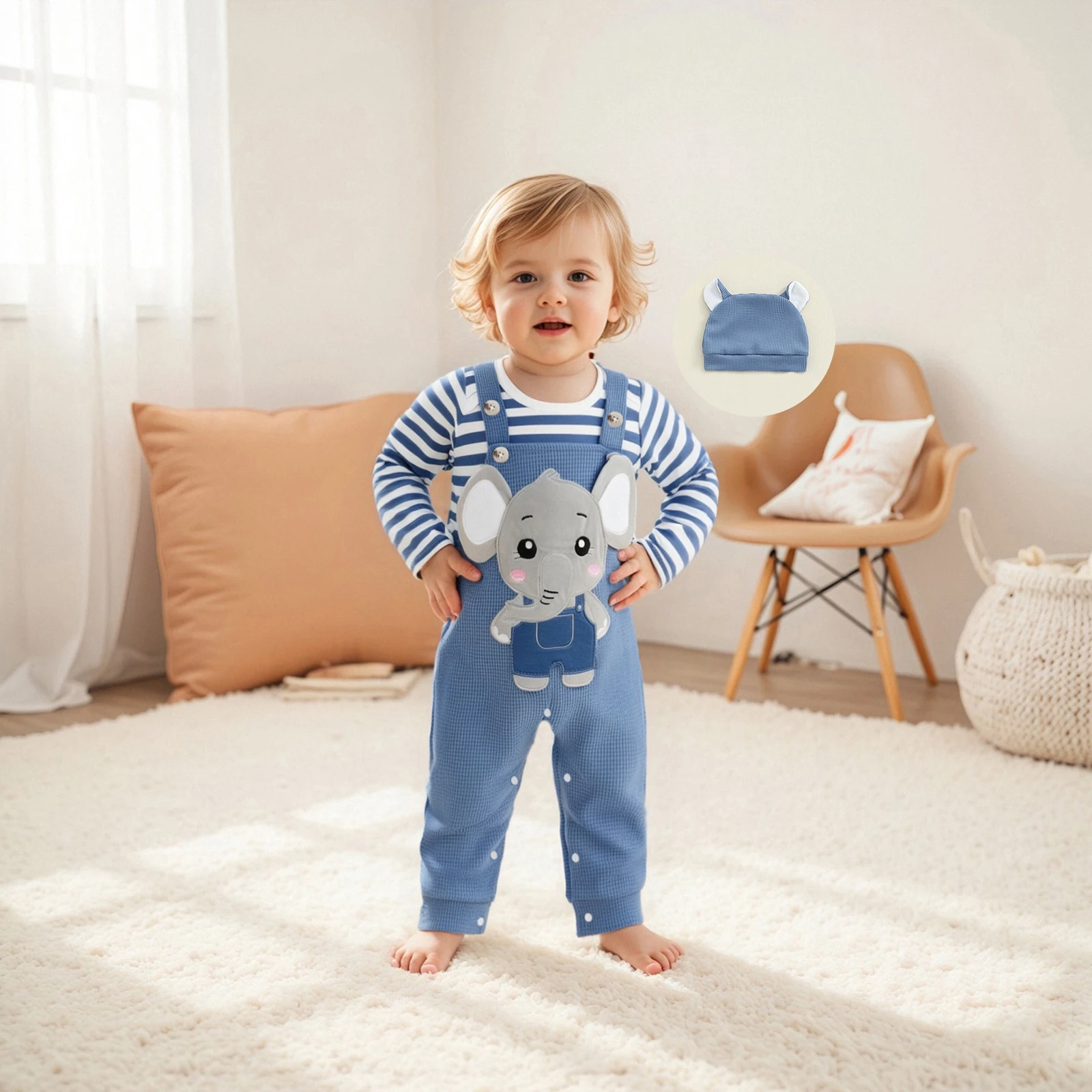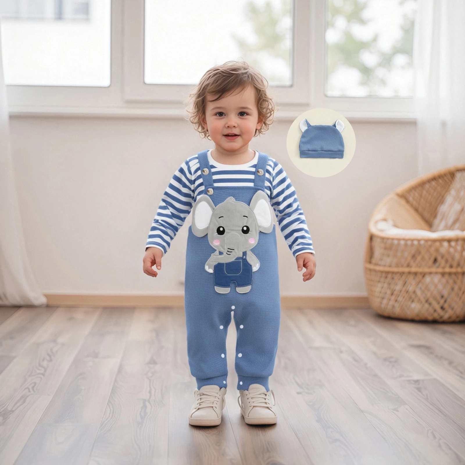 Discover the perfect blend of style and comfort with our Baby Boy’s Clothing Sets. This adorable 3-piece outfit features a long sleeve striped romper, beautifully embroidered overalls, and a matching hat. Designed for babies aged 0 to 18 months, this outfit is a must-have for your little one’s wardrobe. Whether for a casual outing or special occasions, this set ensures your baby looks fashionable while staying cozy.