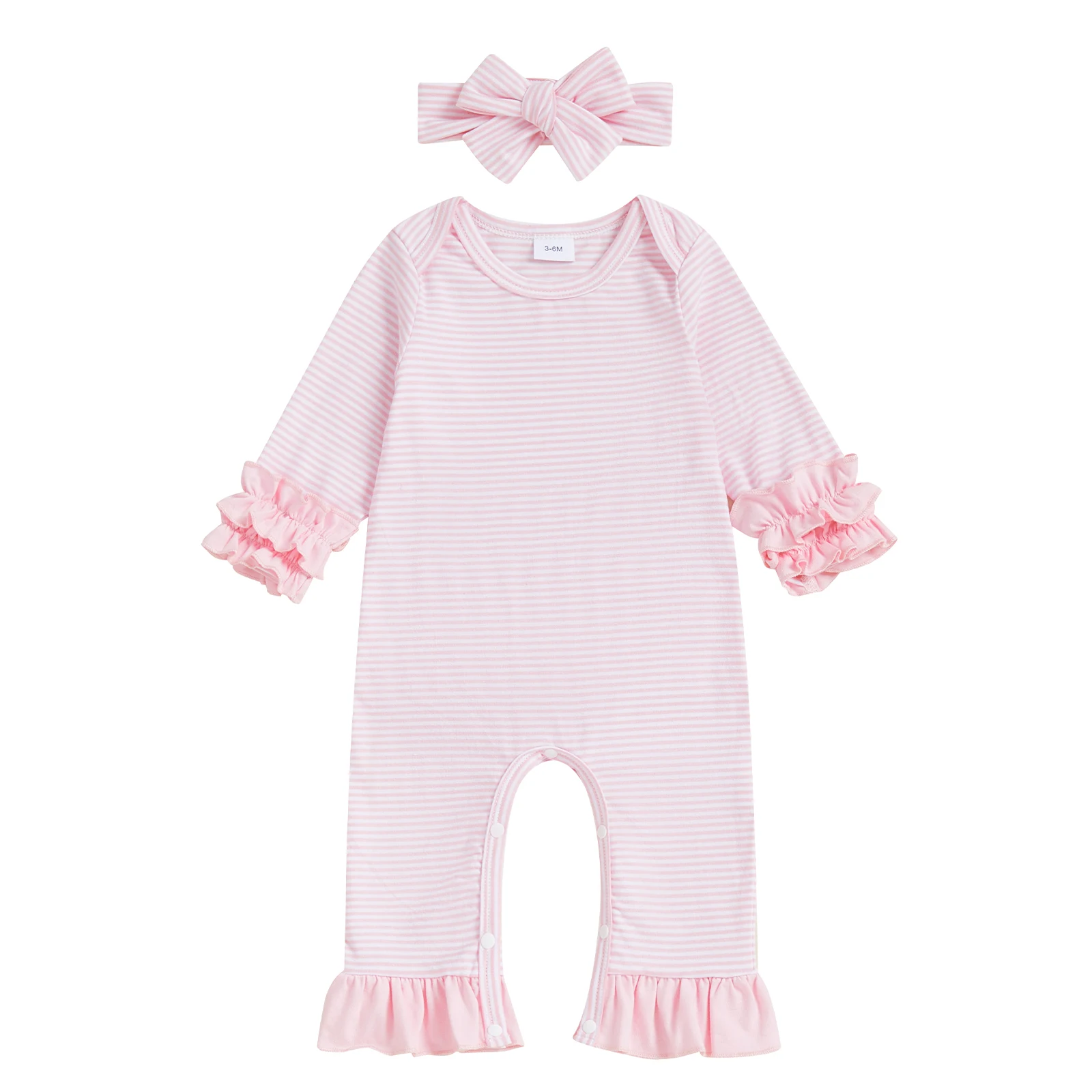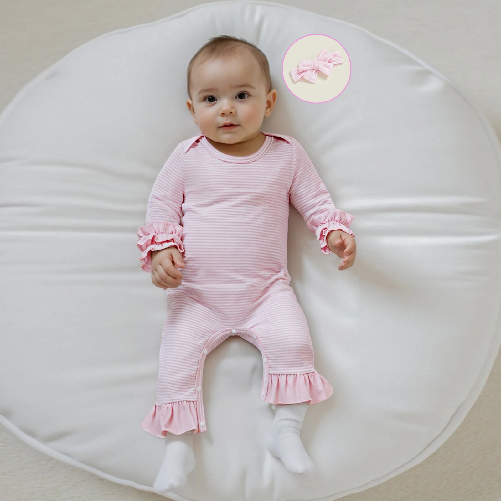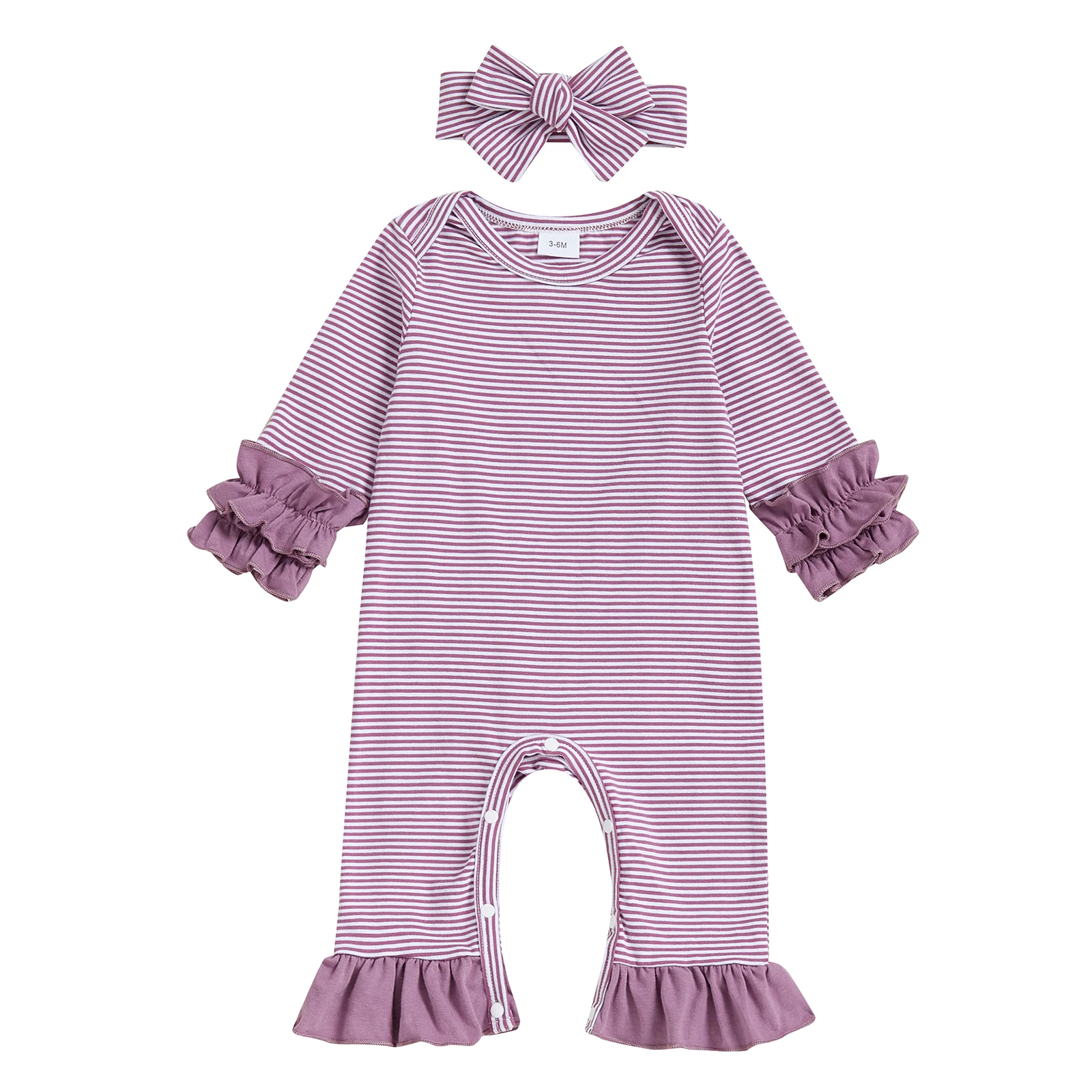 The Baby Girls Fall Romper is the perfect outfit for your little princess this season! Designed with a charming stripe print and delicate ruffles, this jumpsuit combines style and comfort to keep your baby looking adorable while enjoying maximum freedom of movement. The included headband adds an extra touch of cuteness, making it an ideal choice for daily wear or special occasions!