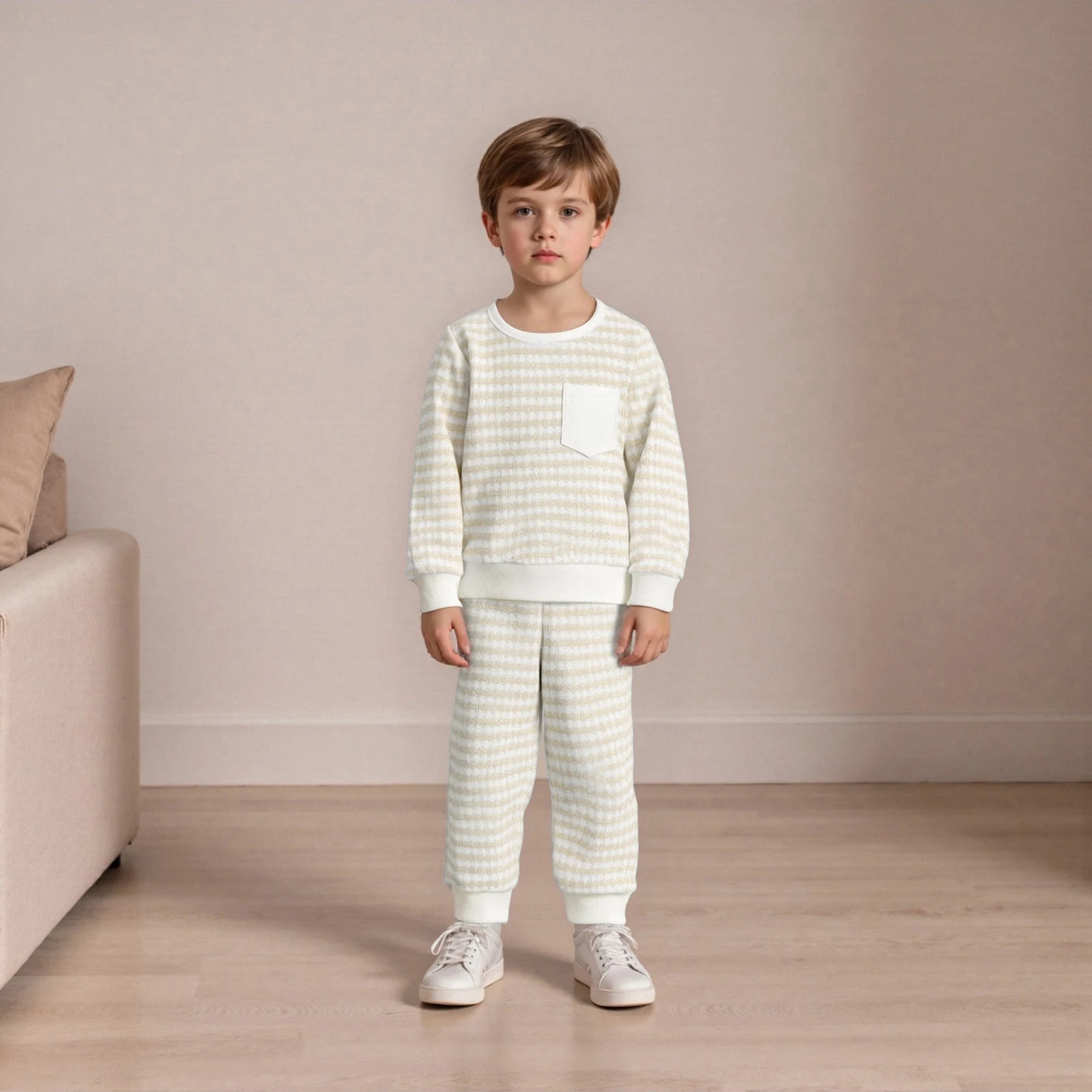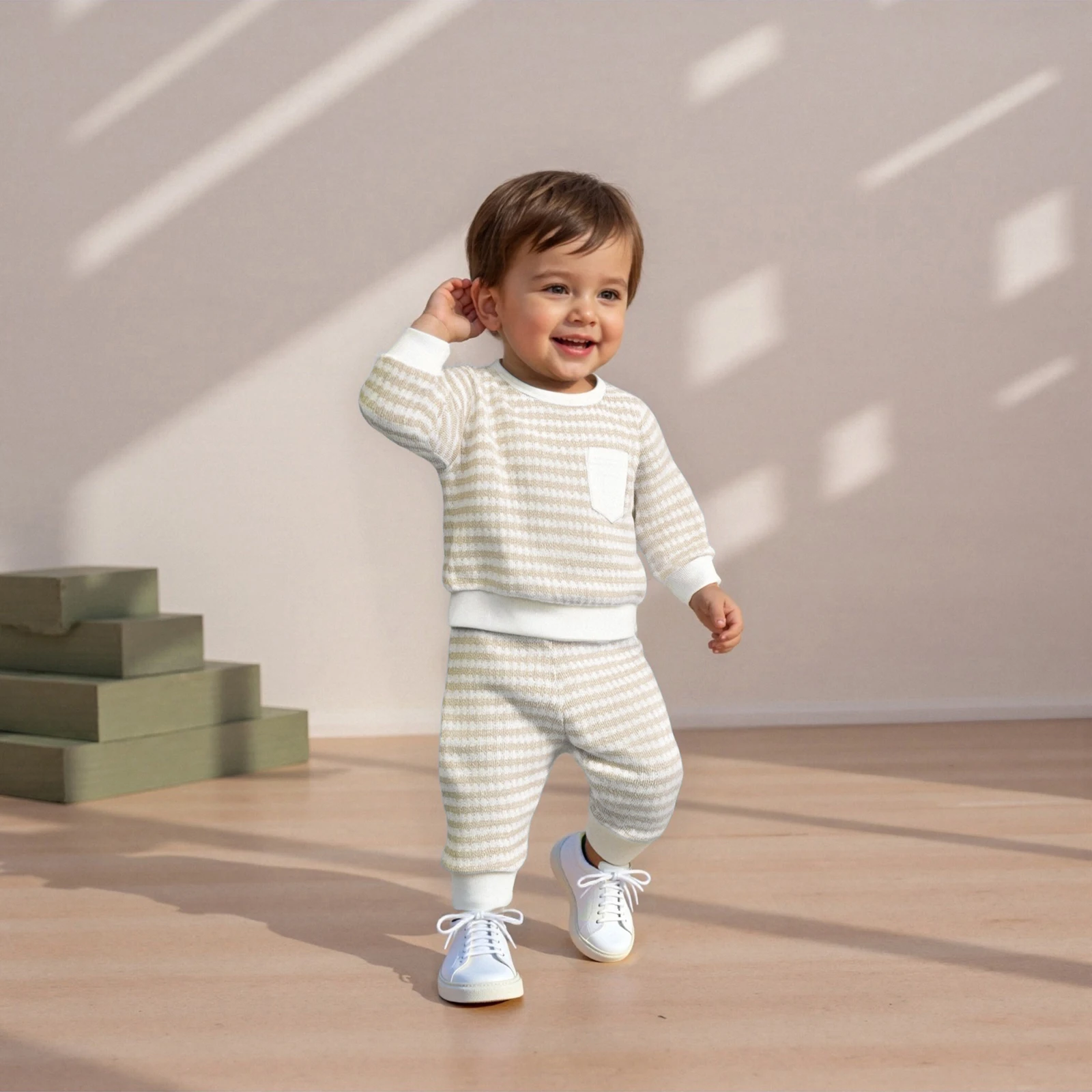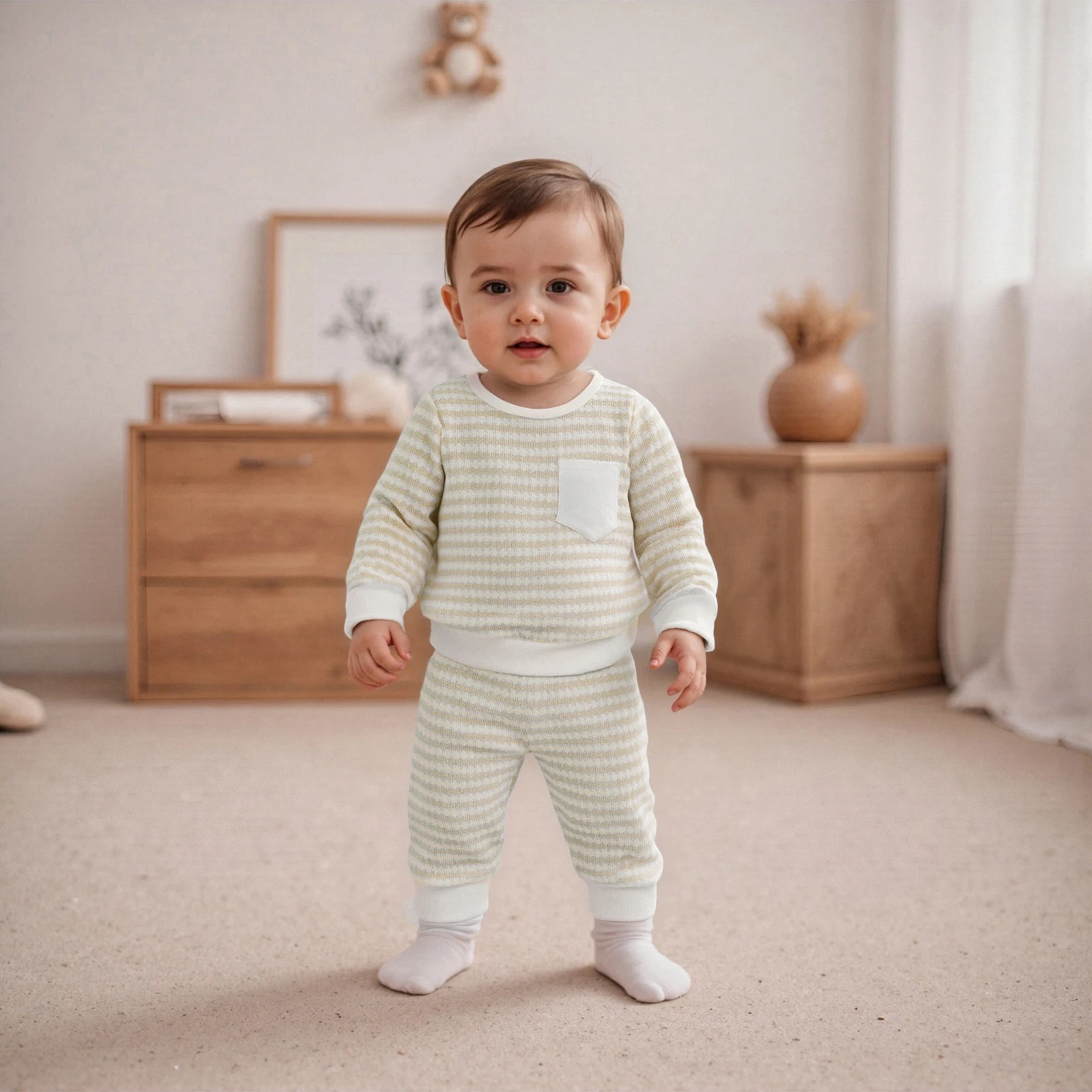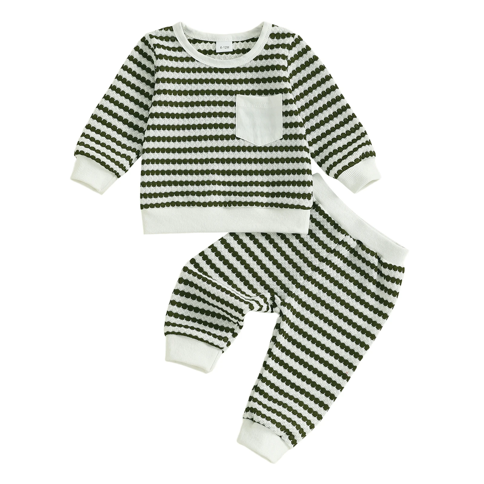 Introducing the perfect blend of style and comfort for your little one with our Baby Boy 2 Piece Outfits Long Sleeve Crew Neck Striped Tops with Pocket and Elastic Waist Pants Set. Designed for active toddlers, this set is crafted to keep your baby looking adorable while ensuring maximum comfort throughout the day. Whether it’s playtime at the park or a casual family gathering, this outfit will be a favorite choice in your child’s wardrobe.