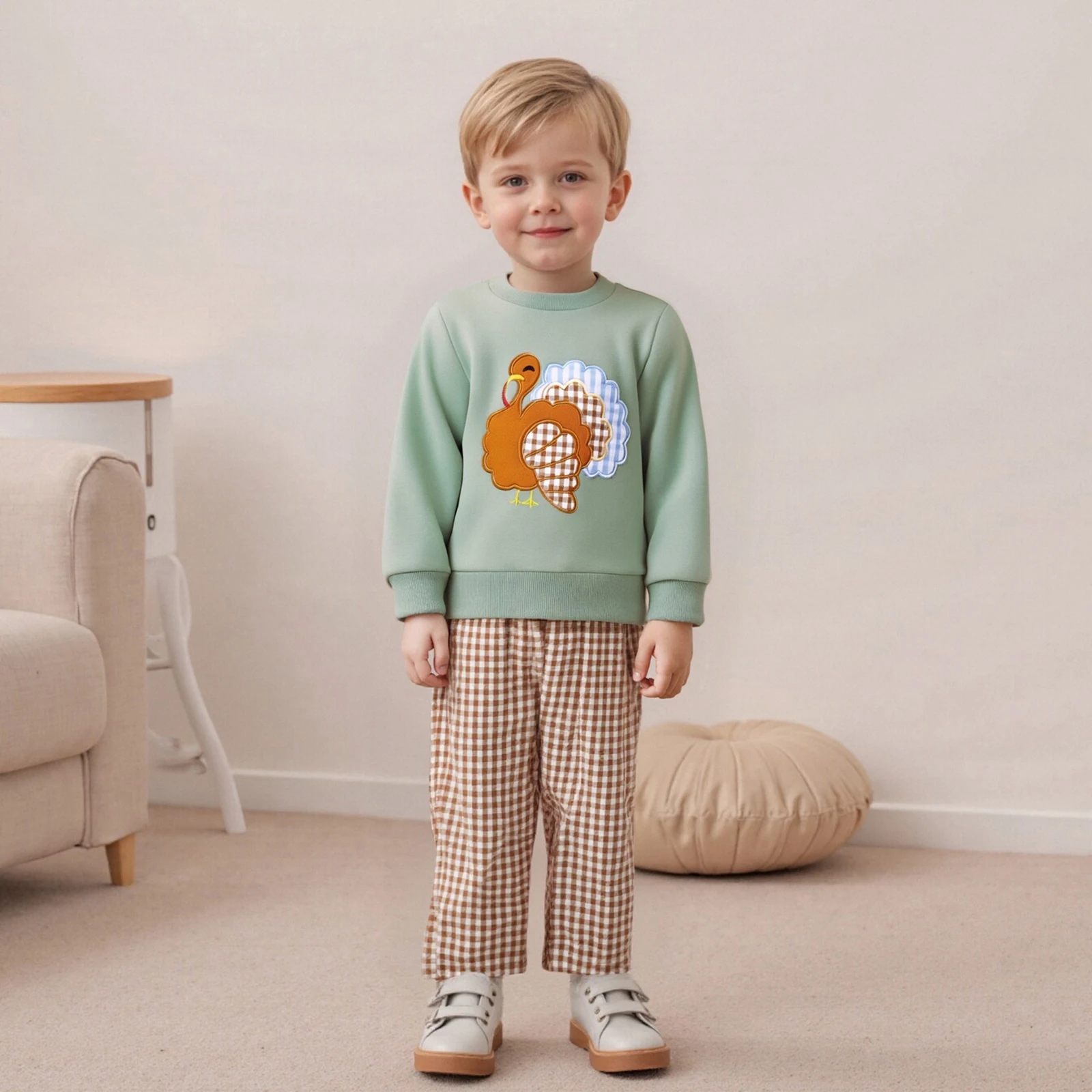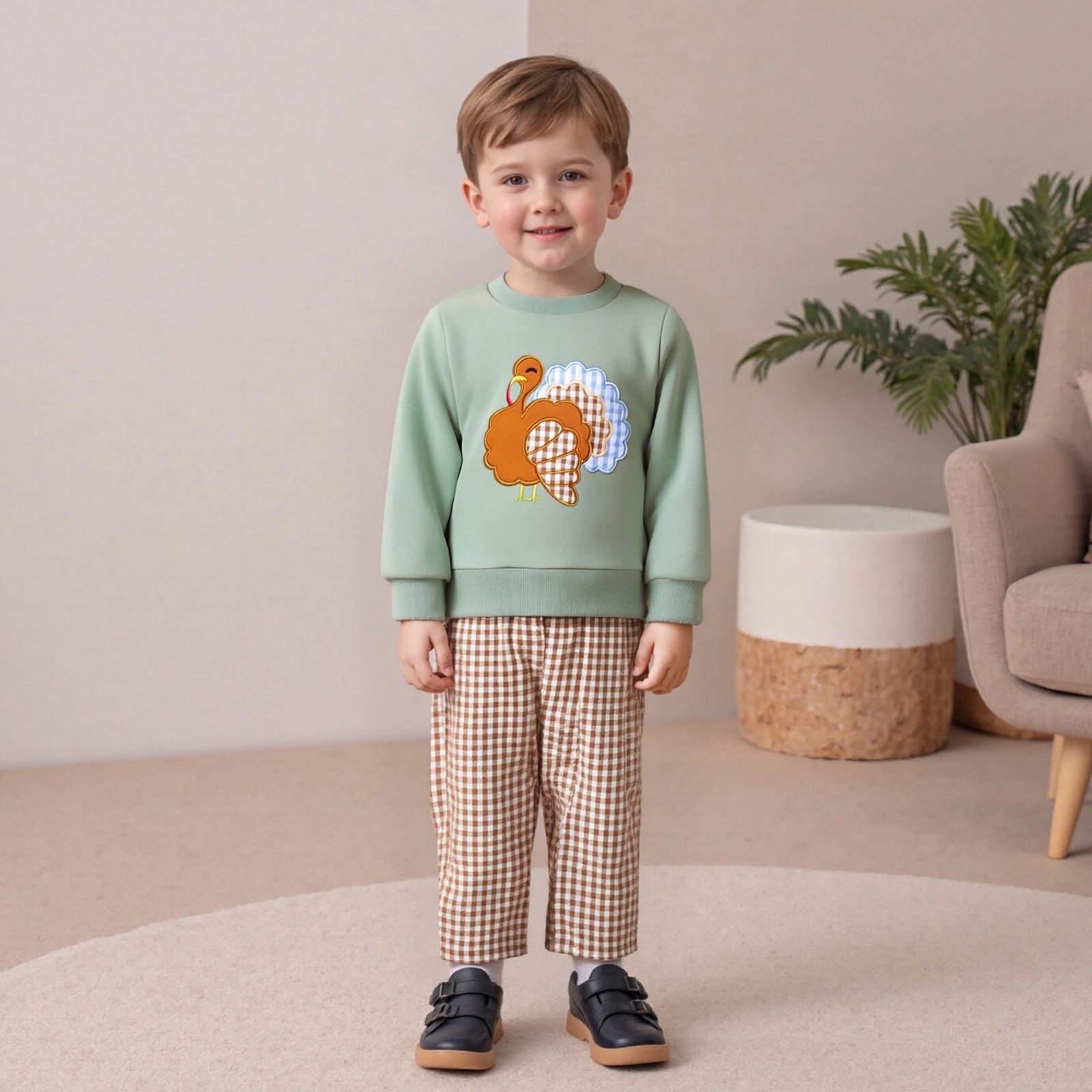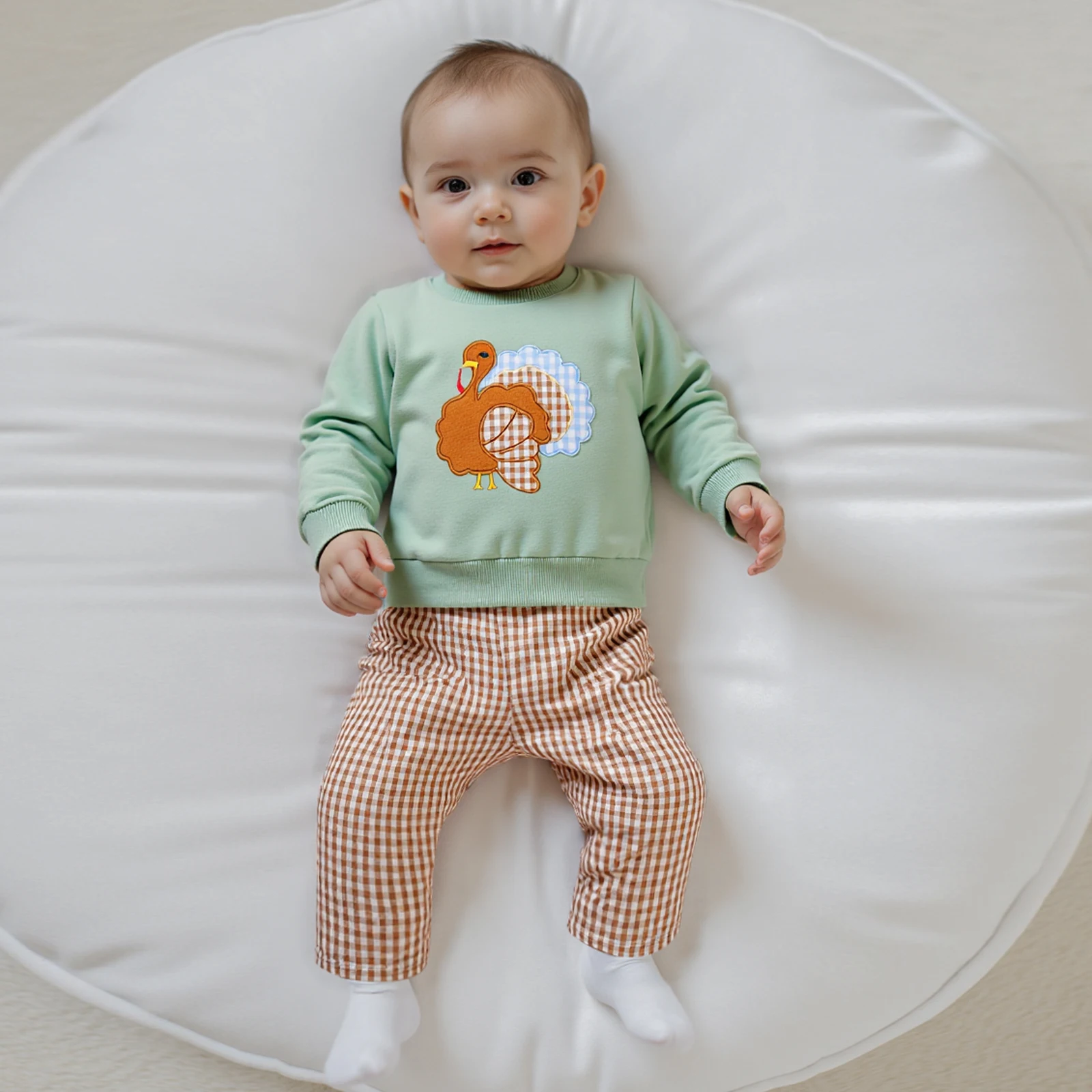 Introduce your little one to cozy and stylish attire with our Baby Boy 2Pcs Thanksgiving Outfit. This adorable set features a long-sleeve sweatshirt adorned with charming truck embroidery and a matching pair of pants, making it the perfect choice for family gatherings, holiday celebrations, or everyday wear. Crafted from high-quality materials, this outfit is designed to keep your child warm and comfortable while ensuring they look their best.