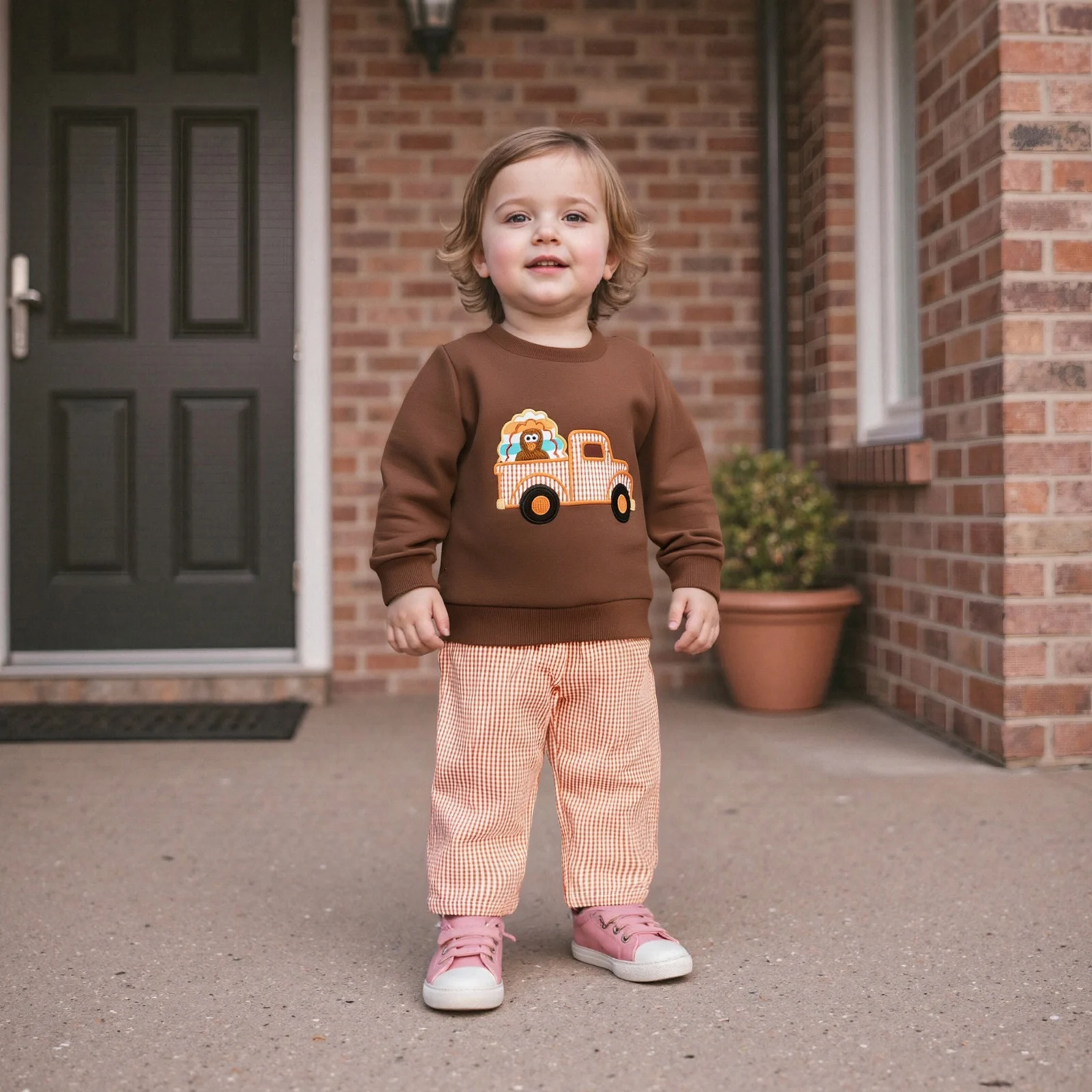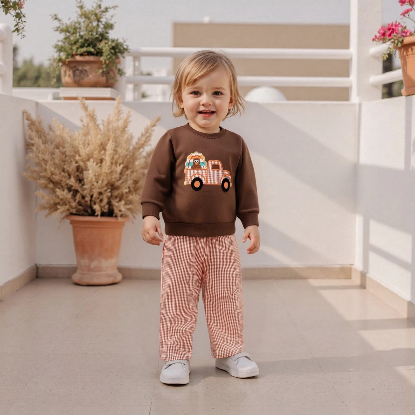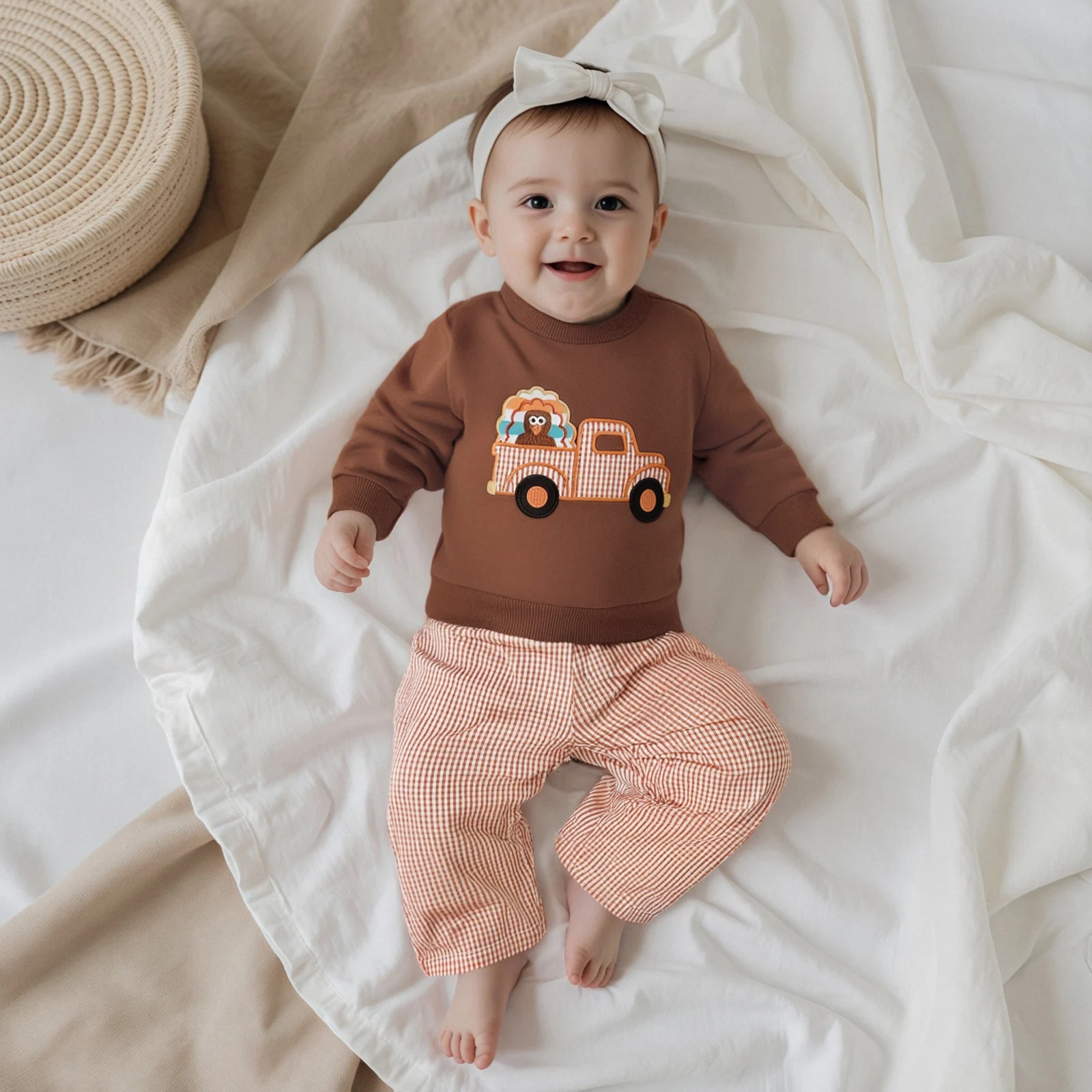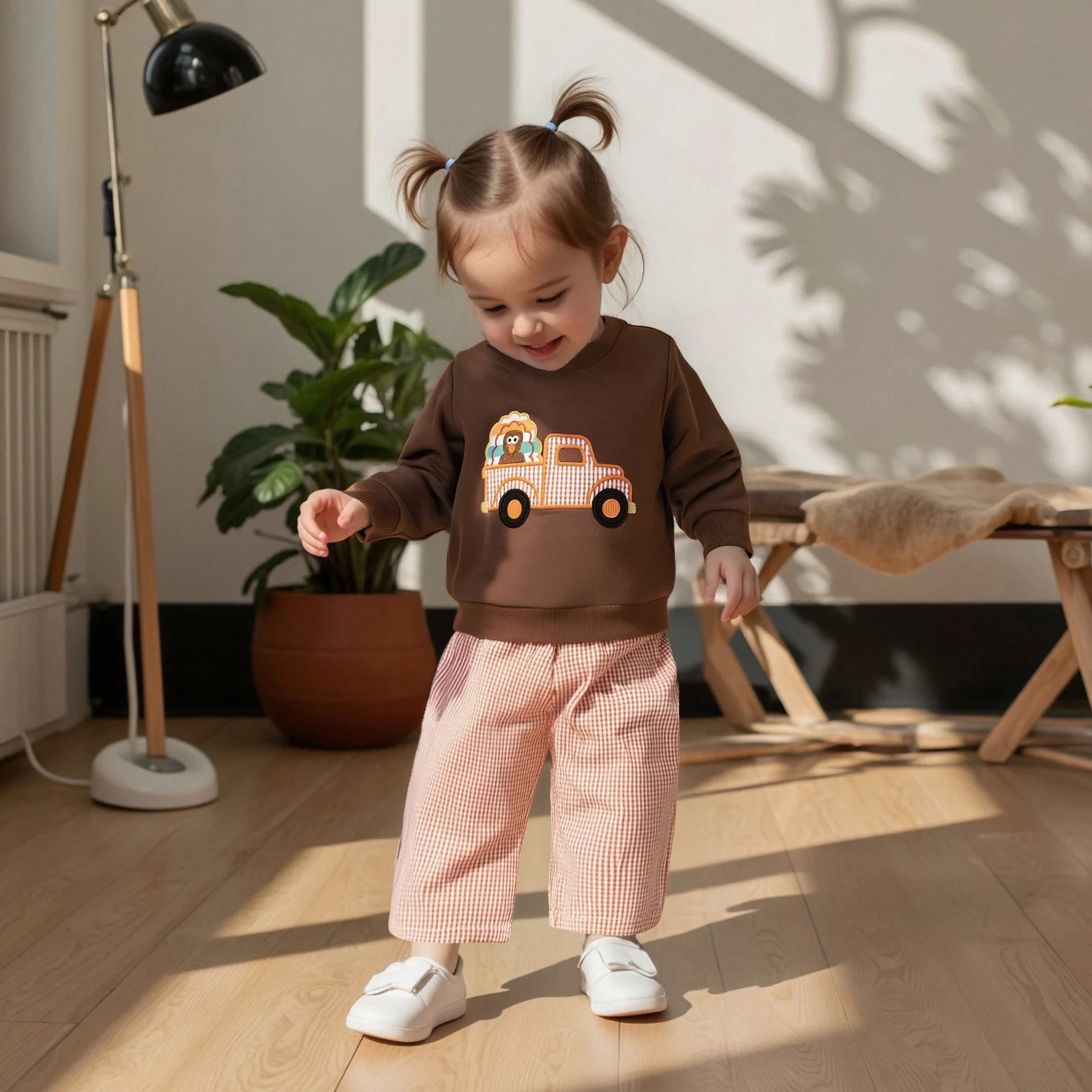 Get your little one ready for the Thanksgiving festivities with our adorable Pudcoco Toddler Girls Thanksgiving Outfit Set. This delightful ensemble features a charming long-sleeve sweatshirt adorned with a whimsical turkey truck embroidery, paired perfectly with elastic plaid pants. Designed for comfort and style, this outfit is ideal for your toddler, ensuring they look cute and feel great during family gatherings, outdoor play, and special occasions.