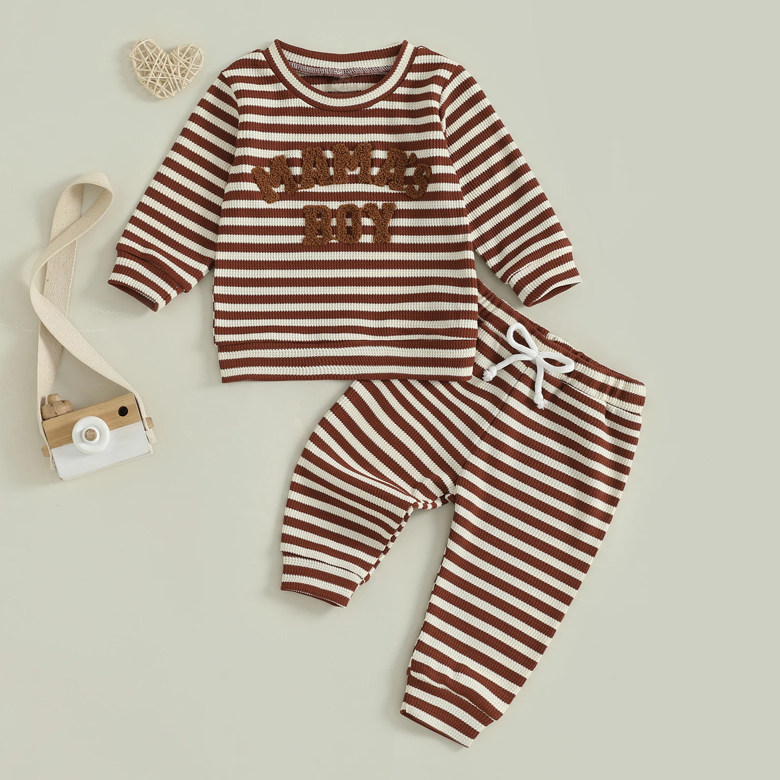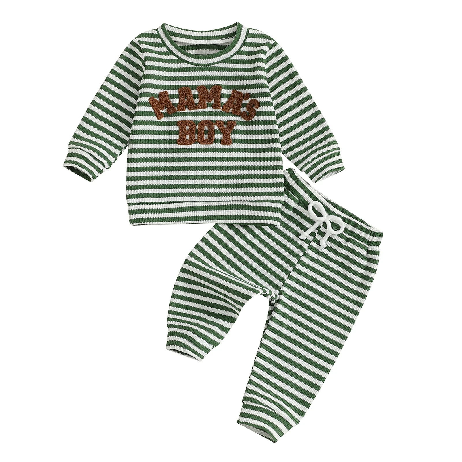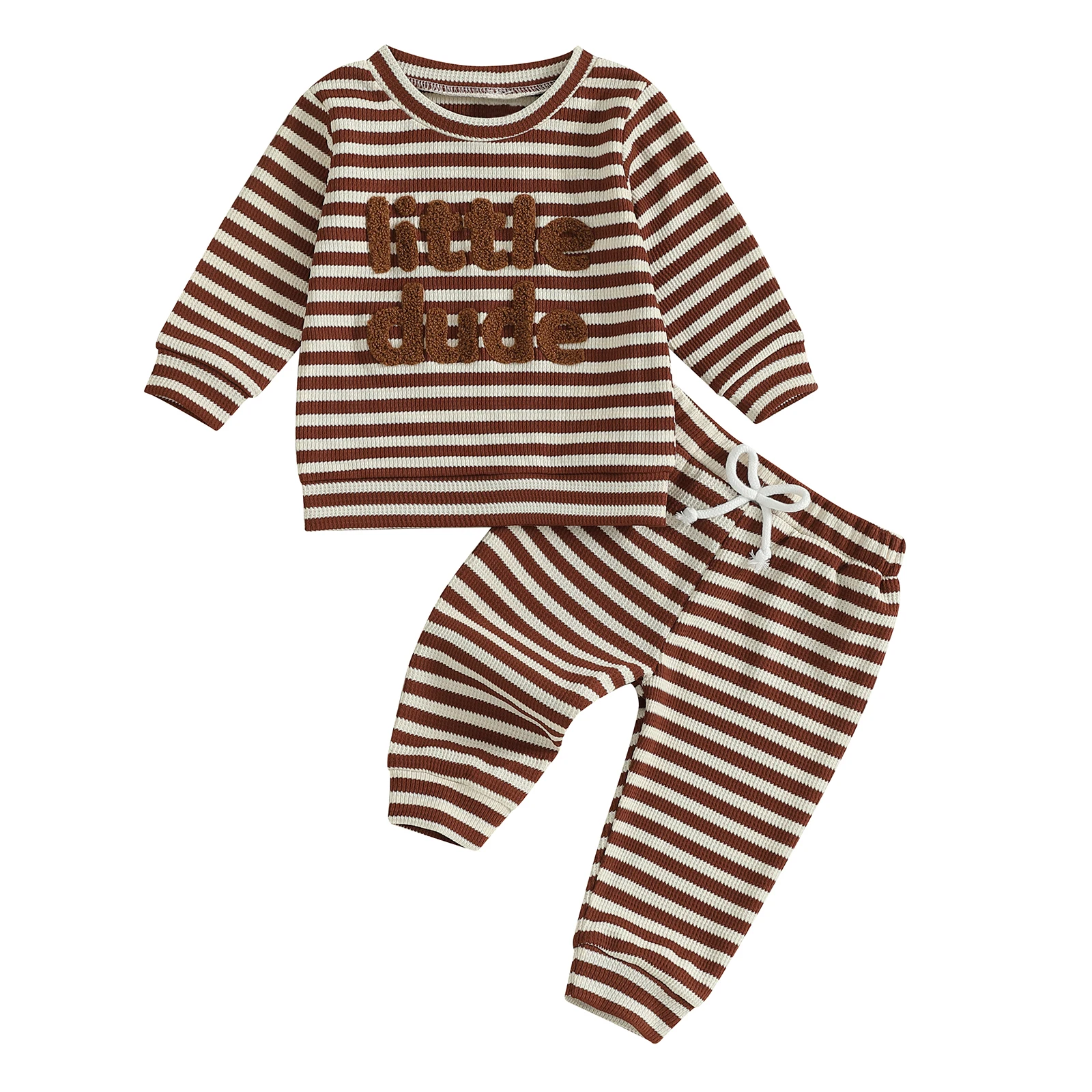 Introducing the Minimillo Toddler Baby Boy Waffle Outfit, a charming two-piece set designed to keep your little one cozy and stylish during the cooler months. This outfit features a delightful waffle fabric that offers warmth and comfort, making it perfect for daily wear, school, or family gatherings. With its cute letter embroidery and trendy striped long sleeve sweatshirt, this outfit is as fashionable as it is functional.