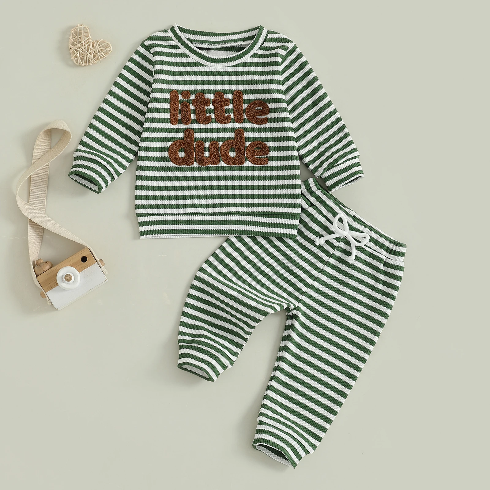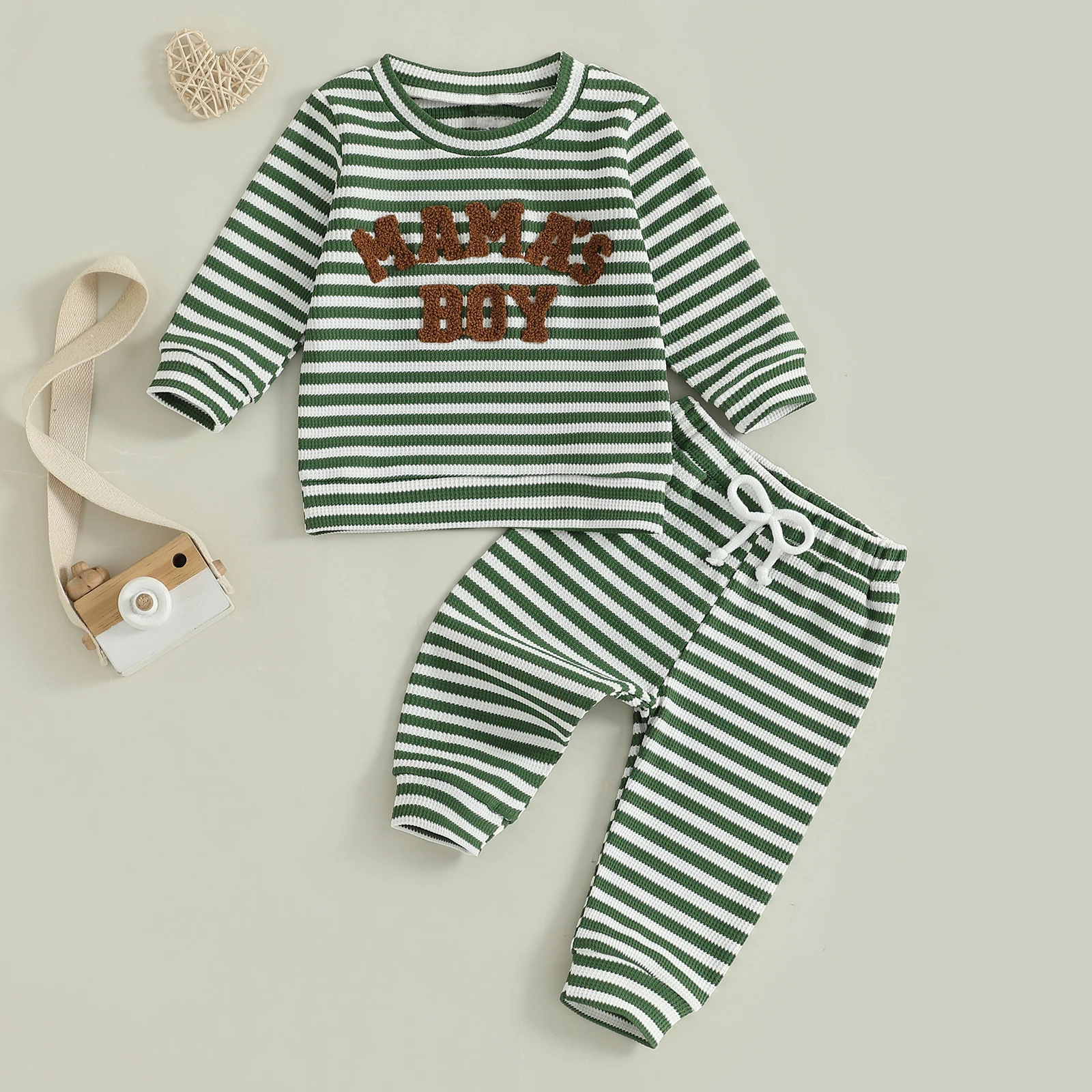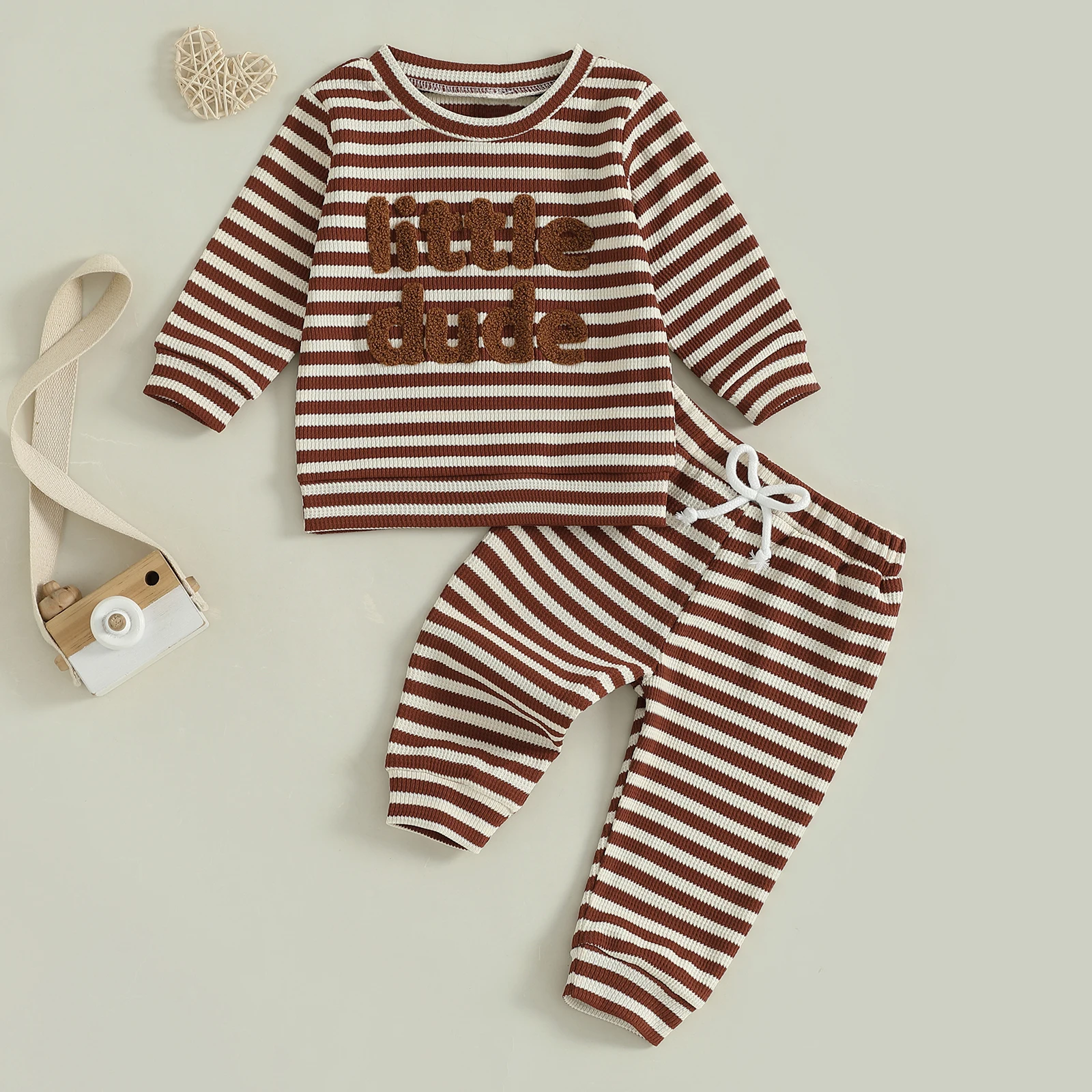 Introducing the Minimillo Toddler Baby Boy Waffle Outfit, a charming two-piece set designed to keep your little one cozy and stylish during the cooler months. This outfit features a delightful waffle fabric that offers warmth and comfort, making it perfect for daily wear, school, or family gatherings. With its cute letter embroidery and trendy striped long sleeve sweatshirt, this outfit is as fashionable as it is functional.